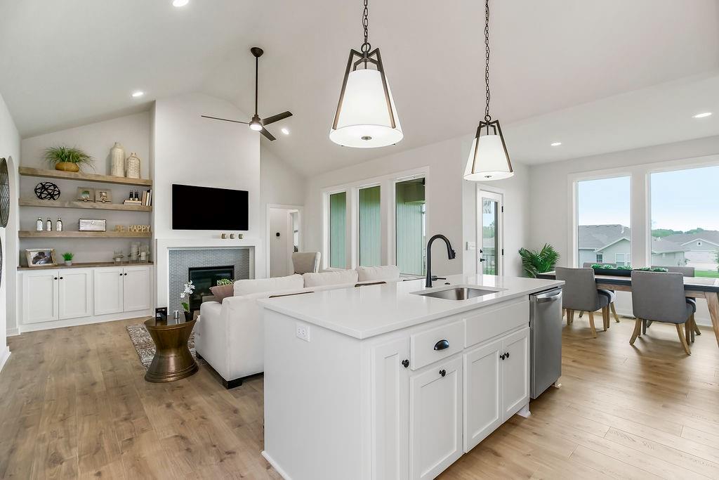 The Lily by Harlow Homes - Lot 69. This brand new plan combines quality construction and perfect size home for one level living with additional finished space in the lower level. Live in a beautiful GOLF COURSE community!! This home only has a few finishing touches left till it's complete. FINISHED PHOTOS and VIRTUAL TOUR OF ANOTHER MODEL. The vaulted ceiling and arched doorways of the great room give the home extra pizazz. Standard upgrades include quartz in the kitchen and bathrooms, high end LVP flooring, wall oven and gas cooktop. The main floor Primary Bedroom and Bath Suite includes a tub, walkin shower and a generous primary closet. A second bedroom and bath are also on the main floor. The lower level is finished with a Rec Room, 3rd and 4th Bedrooms and third Bath. Large covered patio to enjoy the outdoors. Just 10 minutes to the Legends shopping and entertainment and 30 minutes to the airport, Falcon Lakes is conveniently located on K-7 for easy highway access. Acclaimed Basehor-Linwood Schools!