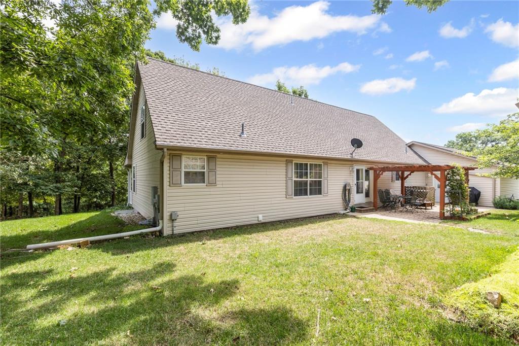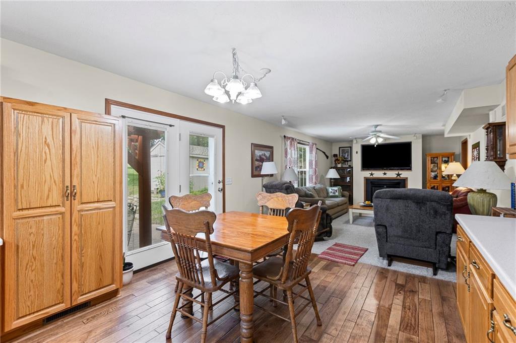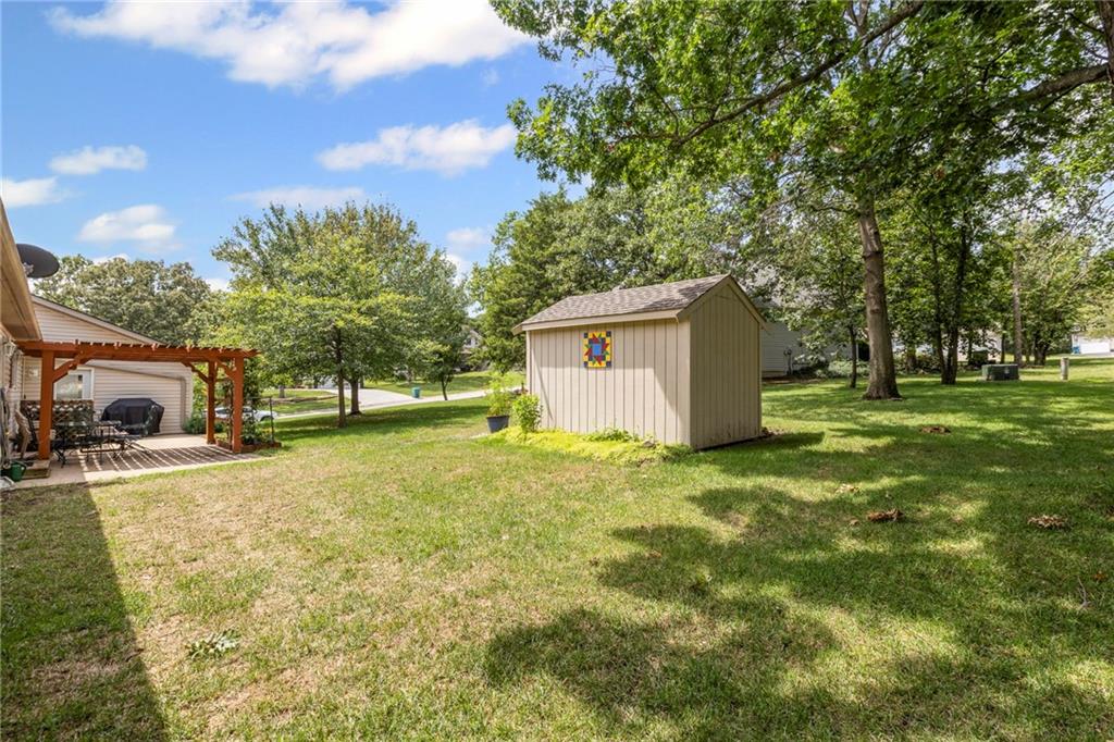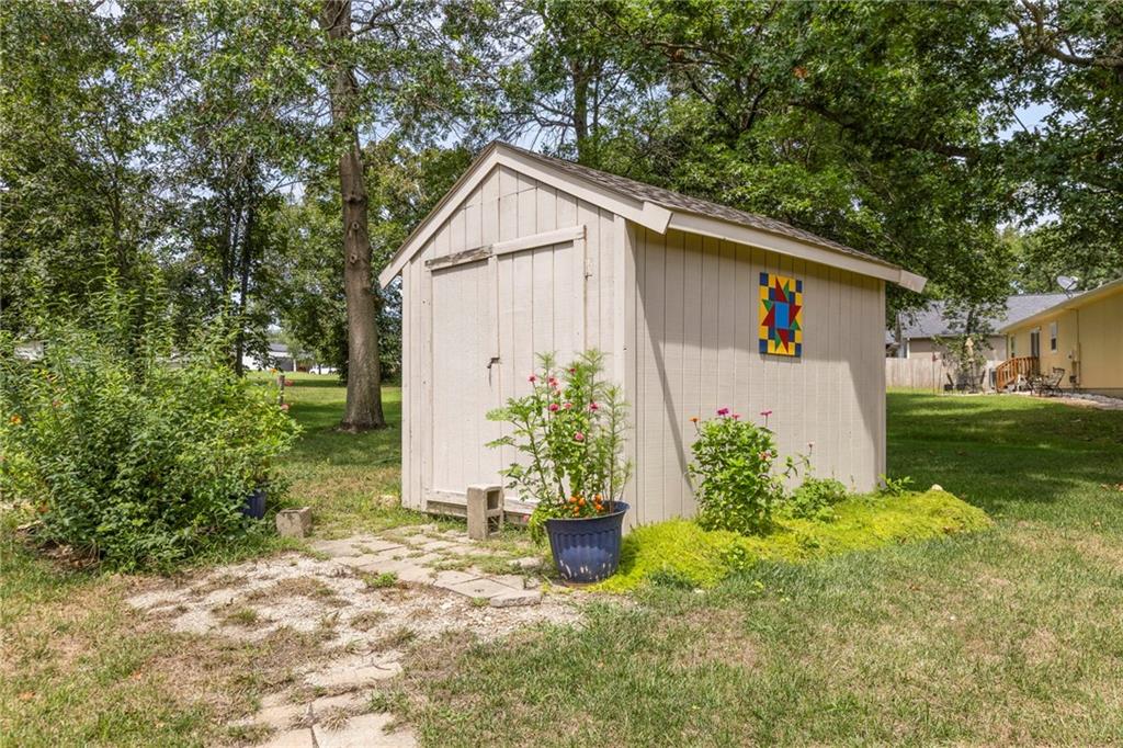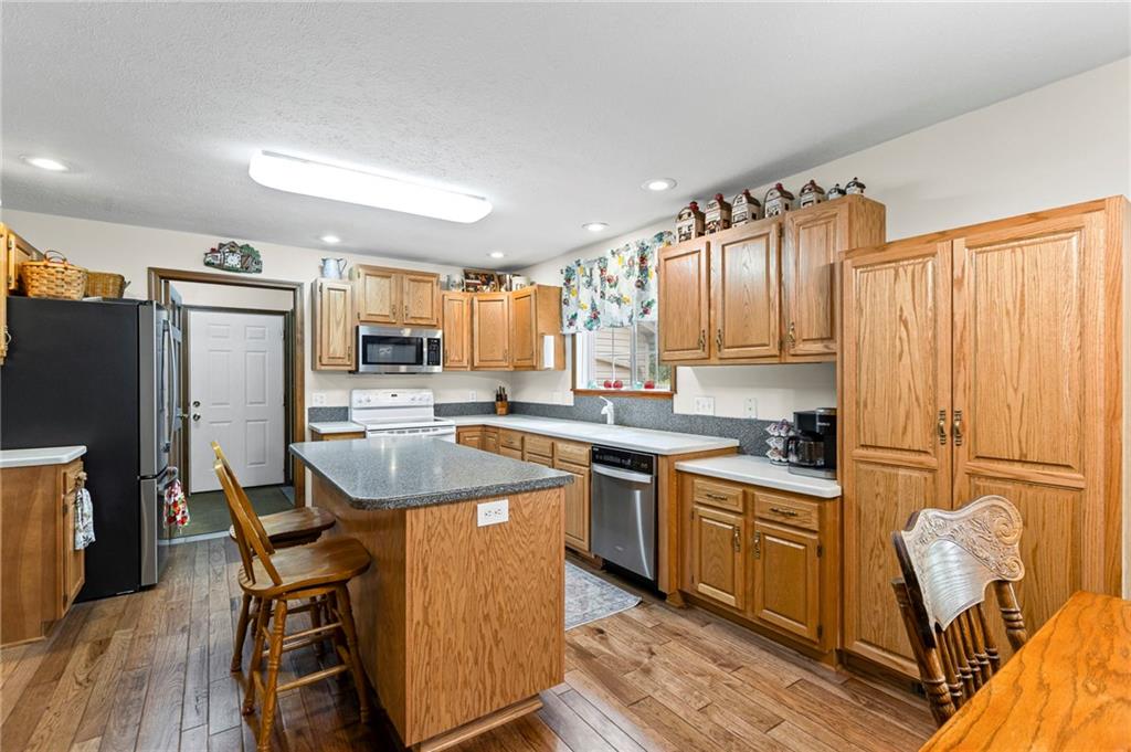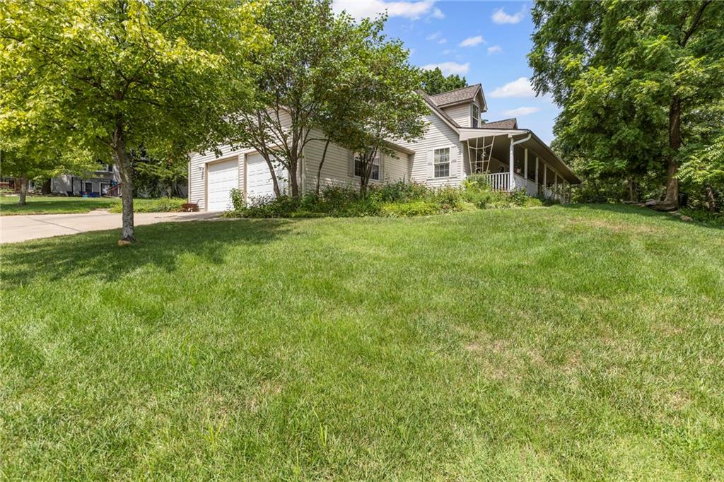 An inviting 8X60 front porch welcomes you to this beautiful three-bedroom, two-and-a-half-bath home, nestled on a nearly half-acre lot in the private and highly sought-after Hickory Valley Subdivision. The main level is perfect for entertaining. The huge eat-in kitchen is a chef’s delight, with abundant cabinets, Corian countertops, a large island, two pantries with pull-out drawers, a built-in double trash can cabinet, and beautiful hardwood floors. The kitchen seamlessly flows into the great room, which features a cozy gas fireplace. A formal dining room and a second living area provide plenty of space for gatherings. The spacious primary bedroom ensuite offers a luxurious retreat, complete with double sinks, a soaking tub, and a separate shower. The second floor includes two additional bedrooms, a full bathroom, and a third living area that can easily be transformed into a family room, office, or rec room to suit your needs. A full basement awaits your personal touch, ready to be finished and customized. The large, tree-filled backyard is an outdoor oasis, complete with a patio, a pergola, and a shed. This home is located just 30 minutes south of Olathe, making it an ideal family home. With so much to offer, it won't be on the market for long!