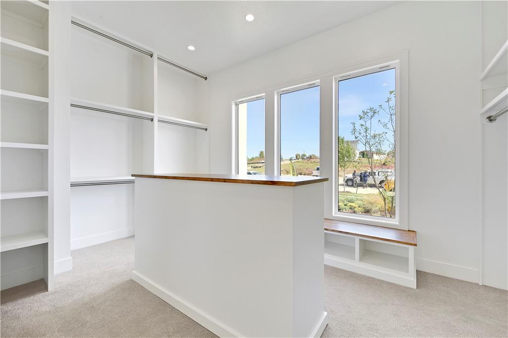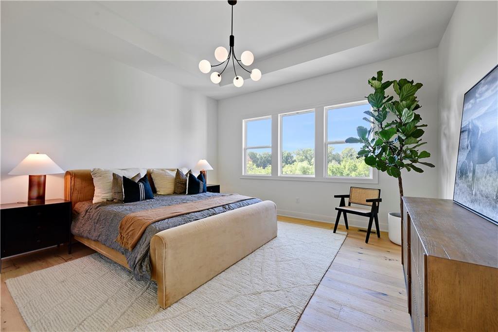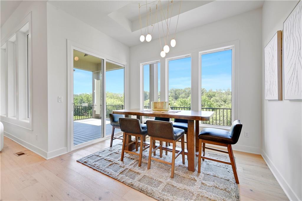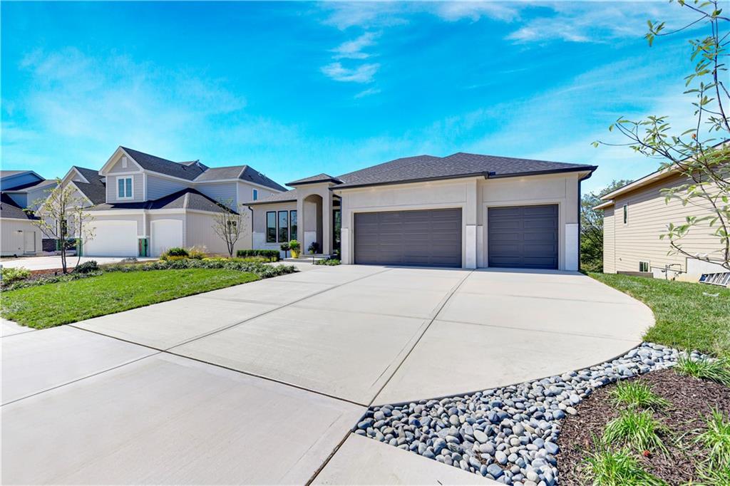 Distinctive Design 1st Place Winner & Pick of the Parade Gold Award Winner. Come visit this beautiful Helm Custom Homes, reverse 1.5 Sty plan in Lenexa KS backing to Woods. The "Aiden" as it's named, features 4 bedrooms, 4 baths and & a 3-stall garage. Backing to trees/greenspace and boasting a level driveway w/walkout, finished LL, what's not to love about this home. Inside you'll find a beautiful mix of decorator finishes w/open floor plan design. There is a covered deck off the great room with an additional grilling deck for that outdoor cooking & entertainment everyone loves. The main level features primary bedroom w/primary bath on one side of the home along with a spacious laundry and huge walk in closet. The other side has the 2nd bedroom or office/flex room with a full bath along with a spacious mud room & large pantry & prep area. Between the (2) sides of the home, lies the beautiful kitchen, breakfast room and vaulted great room w/amazing views. There is a finished walkout lower level w/2 more spacious bedrooms and 2 full baths. There is also a large recreation room w/wet bar walking onto the covered patio. Should you choose, there is an optional 5th bedroom/bath that can also easily be added in the LL too. This is truly a wonderful design w/custom finishes on a beautiful homesite. This home is for sale and available for immediate occupancy. Open Daily, Home is completed and sits upon lot 57 in the Enclave at Manchester Park.