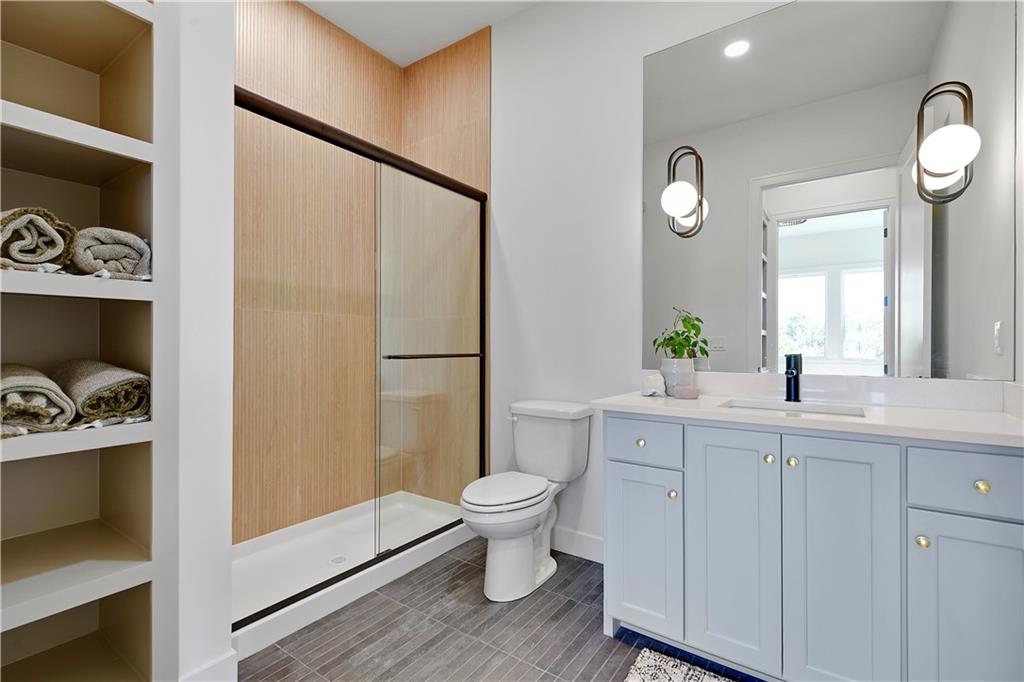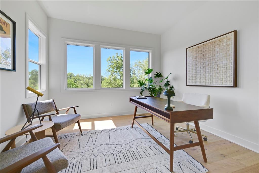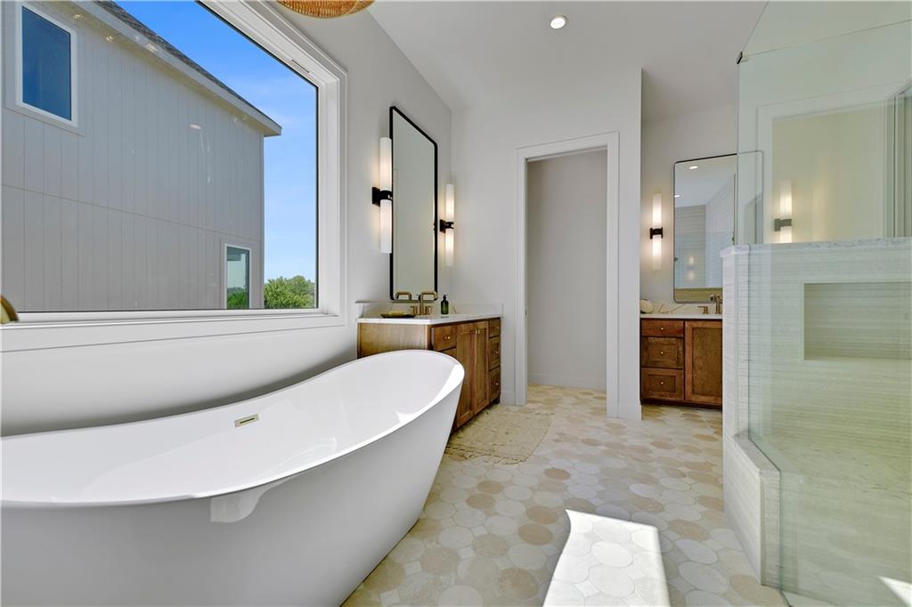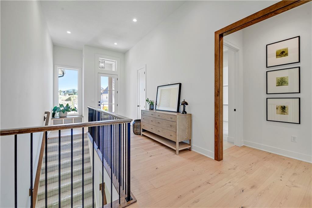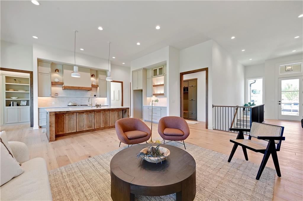 Distinctive Design 1st Place Winner & Pick of the Parade Gold Award Winner. Come visit this beautiful Helm Custom Homes, reverse 1.5 Sty plan in Lenexa KS backing to Woods. The "Aiden" as it's named, features 4 bedrooms, 4 baths and & a 3-stall garage. Backing to trees/greenspace and boasting a level driveway w/walkout, finished LL, what's not to love about this home. Inside you'll find a beautiful mix of decorator finishes w/open floor plan design. There is a covered deck off the great room with an additional grilling deck for that outdoor cooking & entertainment everyone loves. The main level features primary bedroom w/primary bath on one side of the home along with a spacious laundry and huge walk in closet. The other side has the 2nd bedroom or office/flex room with a full bath along with a spacious mud room & large pantry & prep area. Between the (2) sides of the home, lies the beautiful kitchen, breakfast room and vaulted great room w/amazing views. There is a finished walkout lower level w/2 more spacious bedrooms and 2 full baths. There is also a large recreation room w/wet bar walking onto the covered patio. Should you choose, there is an optional 5th bedroom/bath that can also easily be added in the LL too. This is truly a wonderful design w/custom finishes on a beautiful homesite. This home is for sale and available for immediate occupancy. Open Daily, Home is completed and sits upon lot 57 in the Enclave at Manchester Park.