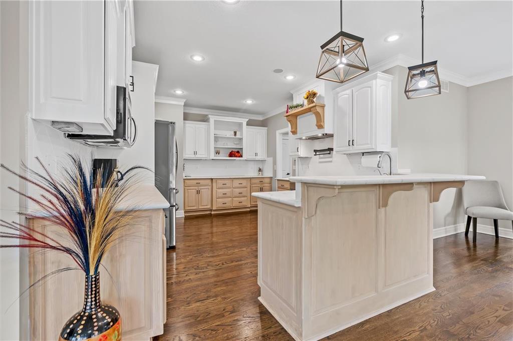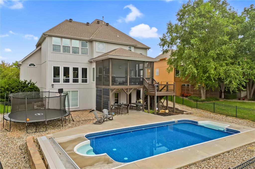 Welcome to this stunning Indian Trails home, beautifully updated inside and out! Step inside to find a fresh color palette, NEW hardwood floors, new carpet, and paint throughout. The kitchen features pretty custom-painted cabinets, an eat-in area, and flows easily to the hearth room with fireplace, formal dining, living room, and main floor home office. The huge master suite offers a true retreat. The walk-out lower level includes a bar and full bath, opening to your backyard paradise with an inground pool, spacious deck, patio, and wrought iron fence. Relax on the covered, screened-in deck with beautiful views of the pool and tree line. Sellers have made extensive updates so you can simply move in and enjoy. All this, plus just minutes to Smithville Lake—perfect for those who love the water and the outdoors!