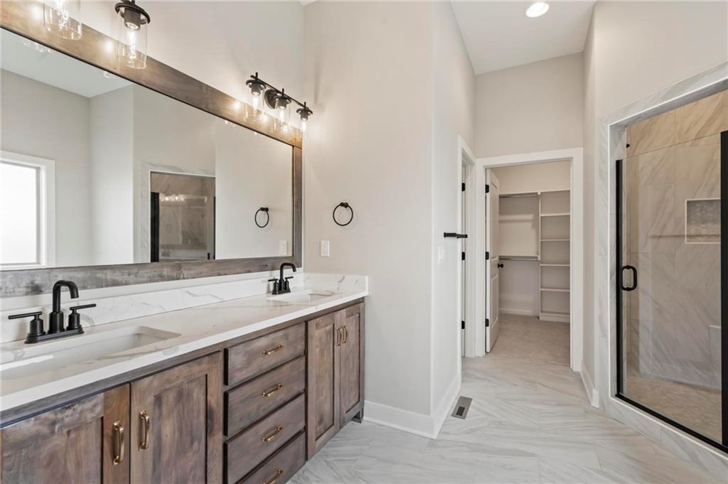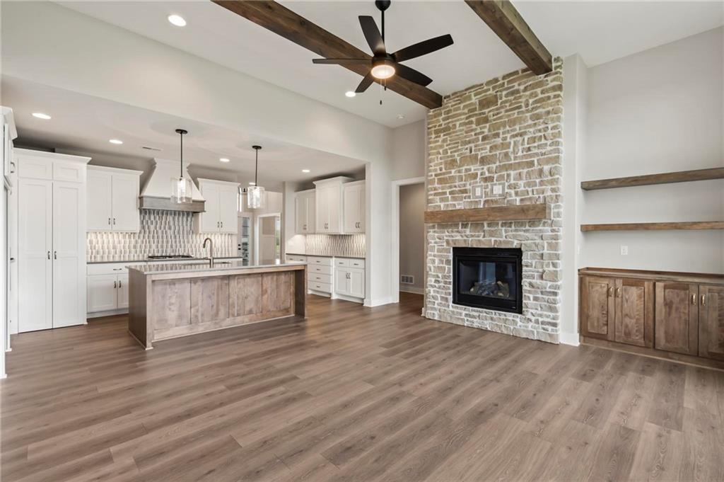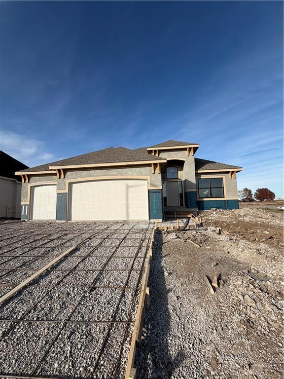 The "Ellenbrook II" Reverse by SAB Homes is here on a walkout lot with a covered deck & covered patio for amazing outdoor entertaining at its finest! As you enter through the grand covered porch into the foyer, you are drawn into the incredible natural light of the Great Room with a fireplace. The covered deck is off of the Great Room by the breakfast area for serene nights with your favorite beverage. The dining room is a splendid dining space just in from the front entry. The Kitchen has an island for your entertaining, ample counter space, S/S Appliances and walk-in pantry. The Primary En-Suite bedroom is tucked behind the Great Room. The primary bathroom has a soaker tub, double vanities and tile shower, leading into the walk-in primary closet. The main level laundry room next to the Primary hallway. Bedroom #2 has a walk-in closet and is on the opposite side of main level connected to a full bathroom with a shower over tub, that also connects to the mud room hall next to the entry from the garage. The lower level has 2 bedrooms, both with walk-in closets, full bathroom with shower over tub, Recreation Room, wet bar, half bath, ample storage and walkout to the covered porch to the beautiful back yard. All in the coveted Heritage Ranch, A Lambie-Rieke Community, with Amenities Galore such as state-of-the-art pool, clubhouse, trails, pickleball. play area, half-court basketball, Putting Green & ponds and so much more coming soon! This community provides a wonderful lifestyle and right next to the 1,238 Acre Heritage Park with Dog Park, Sports Parks, Golf, Lake, Trails and so much more! Contact Onsite Agents for Estimated Completion of homes on site, and design selections. Our Welcome Center Office is now open, located at LOT 65. Open 7 days a week! Welcome Home to Heritage Ranch - one of the last NEW Home Communities in Johnson County! SPEC HOME is Under Construction with an Estimated Completion JAN 2026 on LOT 68.