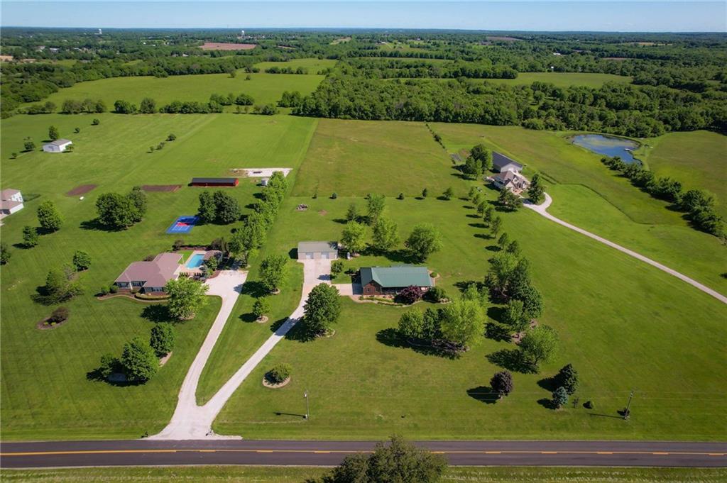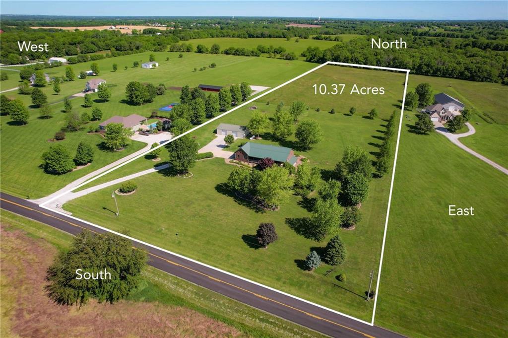 This beautifully maintained, custom-built 5-bedroom ranch sits on 10.37(M/L), offering space, privacy, and the perfect blend of country charm with modern comfort. The main level features a huge primary suite with private bath and walk-in closet, along with three additional bedrooms-one with its own private bath. The kitchen is ideal for family gatherings, featuring custom oak cabinets, hardwood floors, double ovens, and an open-concept layout that flows seamlessly into the dining and living areas. Built-in cabinetry and a custom entertainment center add warmth and functionality. Laundry room with sink sits conveniently near primary suite and kitchen. Formal dining room could be used as an office or bedroom. Enjoy the outdoors with a large screened-in back porch overlooking the property's natural setting, and a big front porch that welcomes guests with timeless country appeal. The finished walk-out lower level expands your living space with a large family room, full bath, guest bedroom, and a versatile bonus room with built-in storage-perfect for a home office, craft room, or 6th bedroom. Best of all, the pool table in the family room stays with the property, making it move-in ready for entertaining. A generous unfinished storage area (approx 700 sq ft) makes organizing seasonal and household items easy. Recent updates include a steel roof (2017), steel siding (2019), Pella windows (2018), and new garage doors/openers (2021). The home is energy-efficient with excellent insulation, attic fan, and dual heat sources (propane and wood stove) to keep utility costs low. A covered firewood storage area by lower level door offers convenience. 1,000-gallon propane tank comes with the property. Outside, a 30x50 outbuilding with concrete floor, 100-amp electric service, 2 garage bays, and a barrel stove provides the perfect workshop, seller is leaving his full-size air compressor. This property combines country charm, comfort, and efficiency-ready for you to make it home.