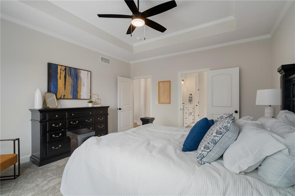 The HAMPTON VI Reverse 1.5 story by New Mark Homes is a standout plan with an inviting entry, tall ceilings, a wall of windows and a back staircase with a daylight lower level. Beautiful touches & details throughout. Kitchen has oversized island and gas cook top. Free standing tub in master bath. ***Home is in process and estimated completion in February 2026***Taxes are estimated. Pictures are of a similar home. Lakeview Ridge is a new build community just west of Lake Olathe with great homes started and fantastic lots available. POOL coming in 2026. You can get to the neighborhood off of Dennis & Houston with easy access from K7 or coming from Lakeshore. Our Sales Office is located 14271 Houston. Our development is right next to Lake Olathe and neighborhood feeds into Clearwater Creek Elementary, Oregon Trail Middle School and Olathe West High School.