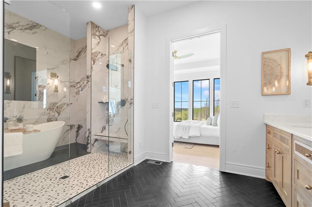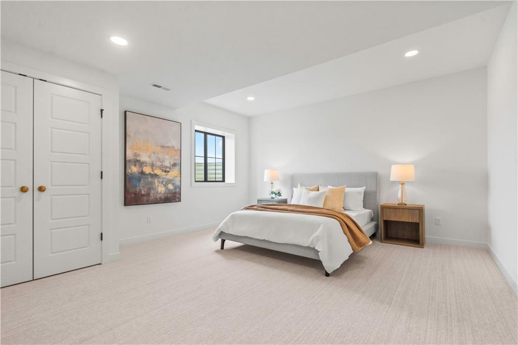 Stone Chase raises the bar with this breathtaking reverse 1.5 story, The Calvin II. Every detail has been thoughtfully designed with luxury and efficiency in mind. From the full stone front elevation to the grand double entry doors, this home exudes curb appeal. Step inside to find designer lighting, can lights throughout, and 8’ interior doors that set the tone for upscale living. The chef’s kitchen is a true showstopper with custom White Oak cabinetry, a Z-Line Autograph appliance package featuring double ovens, and the option for a panel-ready refrigerator. A walk-in butler’s pantry with sink offers added storage and prep space, while the open design makes entertaining a breeze. Retreat to the lower level, where a movie theater with Roxul soundproof insulation promises the ultimate entertainment experience. Outdoors, enjoy a low-maintenance stamped antiqued concrete patio and an upper balcony with large French doors, perfect for relaxing or entertaining. Natural light floods the home through 94" rear windows—the largest available from the manufacturer—while a suspended garage adds valuable storage space. Throughout the home, you’ll find casement windows, fully tiled bathrooms, and thoughtful details that elevate the overall design. Built with energy efficiency in mind, this home features 2x6 construction instead of the standard 2x4, moving the wall R-factor from R13 to R19, along with soaring 10’ walls that add volume and style. Nestled in Woodland Oaks, you’ll enjoy nearby access to Lake Jacomo as well as Legacy Park, which offers a state-of-the-art community center, amphitheater, walking trails, disc golf, and sports facilities for all ages. With an unbeatable location and a home packed full of luxury features, The Calvin II is truly a dream in the making.