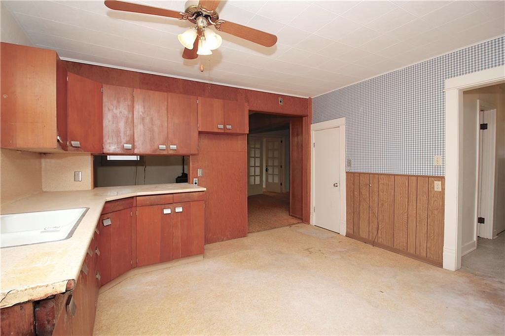 Your next project is ready for some love! Loads of potential here! Office could be a 5th bedroom on the main floor. Laundry room has a vintage sink. Room to add cabinets in the kitchen if needed. Pantry is under the stairway. Lots of storage in the upstairs bathroom. Detached 288 square foot 1-car garage has a concrete floor. 108 square foot shed. Enjoy sipping on your favorite beverage on your covered patio on the back of the home overlooking a treed yard. Parking areas in the front and back of the home.