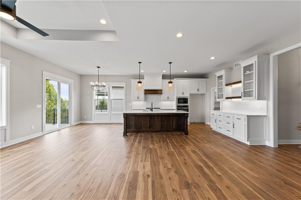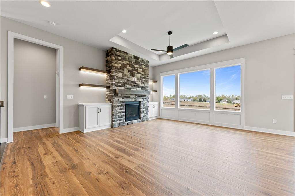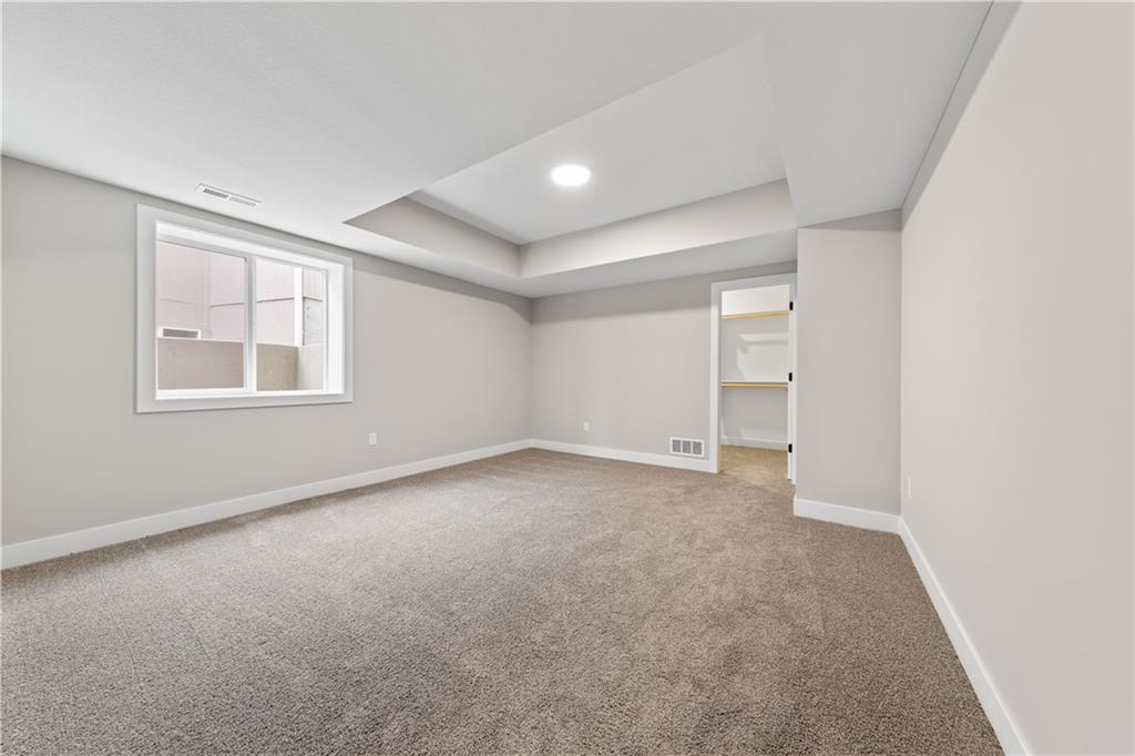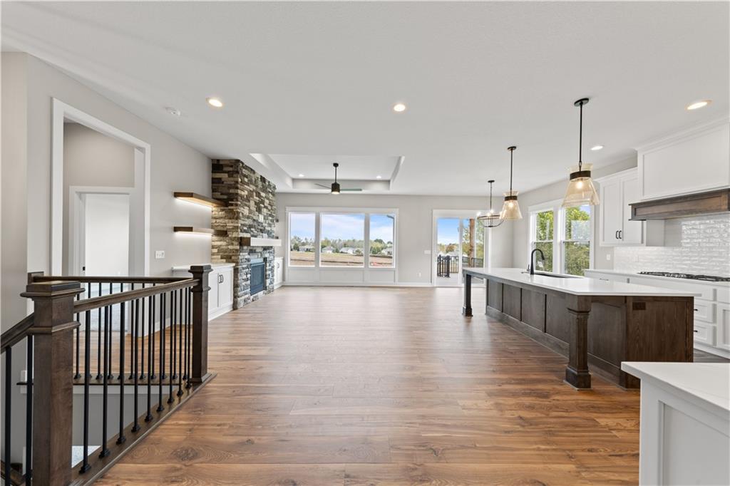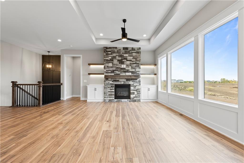$10k Builder Incentive for closing costs or rate buy-down assistance if you close before 12/31/25!  This Inspired Homes Fairfield Reverse 1.5 Story on a WALKOUT lot is the total package — inside and out! From the moment you step into the grand, light-filled foyer, you'll feel the elevated design and thoughtful layout unfold before you. Soaring 10’ ceilings, oversized custom windows, and high-end upgrades set the stage for style and sophistication. The stunning great room is a showstopper — featuring a coffered ceiling with rich wood accents and a statement stacked-stone fireplace that anchors the space perfectly. The open-concept kitchen is a chef’s dream: custom cabinetry, a massive island, GE stainless built-ins including a gas cooktop, and an extra-large walk-in pantry to keep everything organized and out of sight. The main-floor primary suite is a true retreat with tray ceiling, spa-style bath, dual vanities with custom tower storage, and a huge walk-in shower. Bonus? The laundry is cleverly tucked off the primary closet — making daily life easier than ever. The second main-level bedroom offers ideal flexibility as a guest suite or home office. Downstairs, the finished lower level impresses with 9-foot ceilings, a spacious rec room with a sleek wet bar — perfect for game days, movie nights, or entertaining — plus two more generous bedrooms and a full bath. Step outside to enjoy your covered deck AND patio — the perfect setting for morning coffee or sunset drinks. All of this is nestled in Kensington Farms, where residents enjoy access to a sparkling community pool, playground, walking trails, and easy access to Downtown Lee’s Summit, Summit Fair, top schools, shopping, dining, and more.