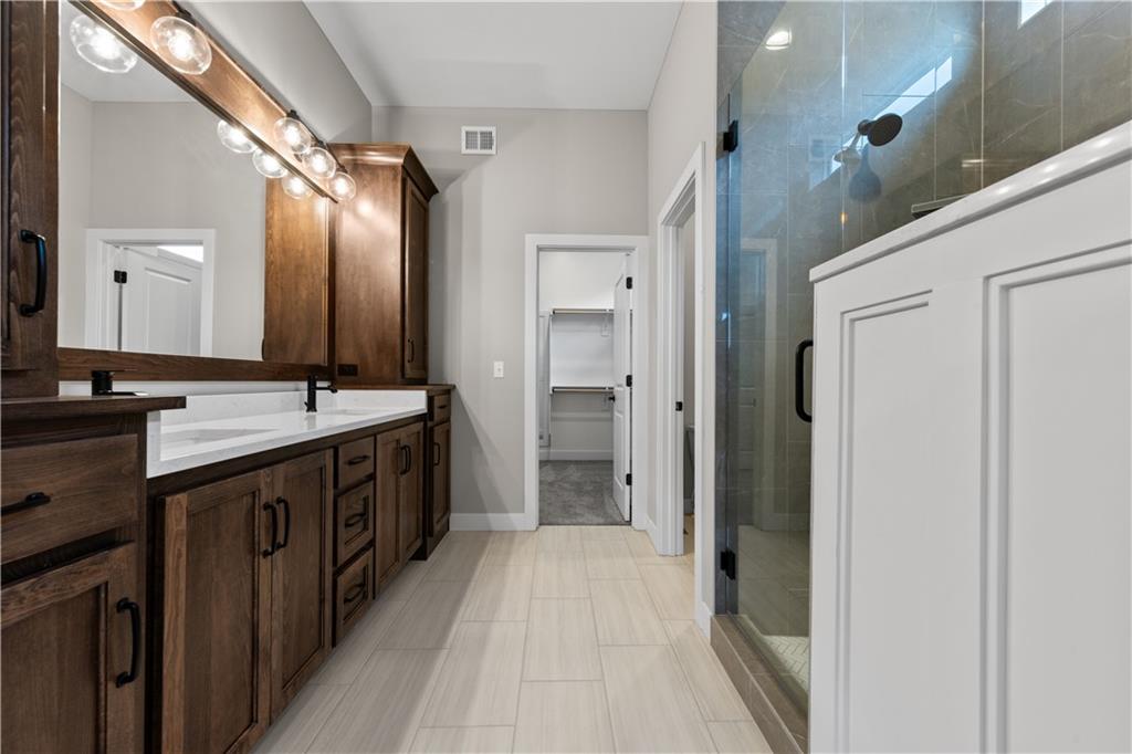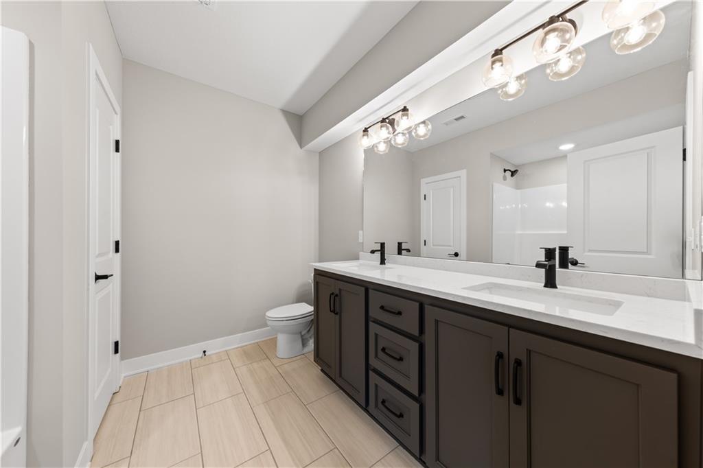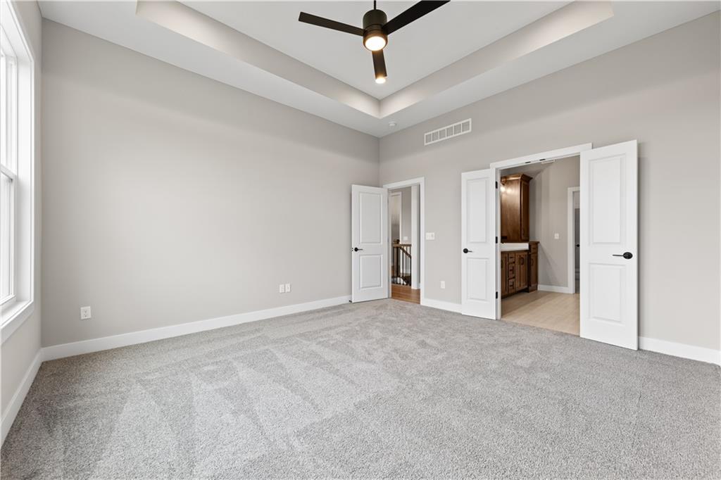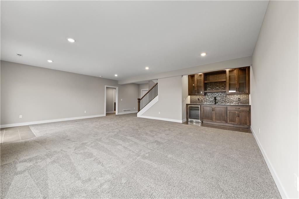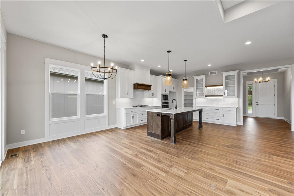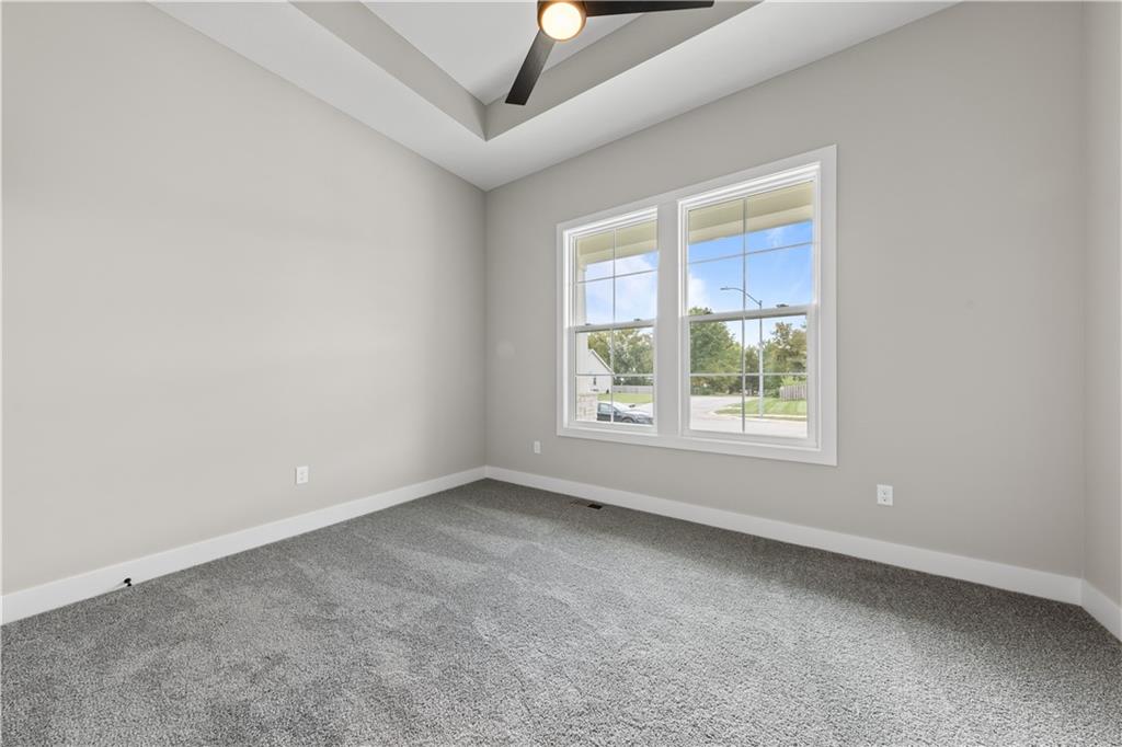 $10k Builder Incentive for closing costs or rate buy-down assistance if you close before 12/31/25!  This Inspired Homes Fairfield Reverse 1.5 Story on a WALKOUT lot is the total package — inside and out! From the moment you step into the grand, light-filled foyer, you'll feel the elevated design and thoughtful layout unfold before you. Soaring 10’ ceilings, oversized custom windows, and high-end upgrades set the stage for style and sophistication. The stunning great room is a showstopper — featuring a coffered ceiling with rich wood accents and a statement stacked-stone fireplace that anchors the space perfectly. The open-concept kitchen is a chef’s dream: custom cabinetry, a massive island, GE stainless built-ins including a gas cooktop, and an extra-large walk-in pantry to keep everything organized and out of sight. The main-floor primary suite is a true retreat with tray ceiling, spa-style bath, dual vanities with custom tower storage, and a huge walk-in shower. Bonus? The laundry is cleverly tucked off the primary closet — making daily life easier than ever. The second main-level bedroom offers ideal flexibility as a guest suite or home office. Downstairs, the finished lower level impresses with 9-foot ceilings, a spacious rec room with a sleek wet bar — perfect for game days, movie nights, or entertaining — plus two more generous bedrooms and a full bath. Step outside to enjoy your covered deck AND patio — the perfect setting for morning coffee or sunset drinks. All of this is nestled in Kensington Farms, where residents enjoy access to a sparkling community pool, playground, walking trails, and easy access to Downtown Lee’s Summit, Summit Fair, top schools, shopping, dining, and more.