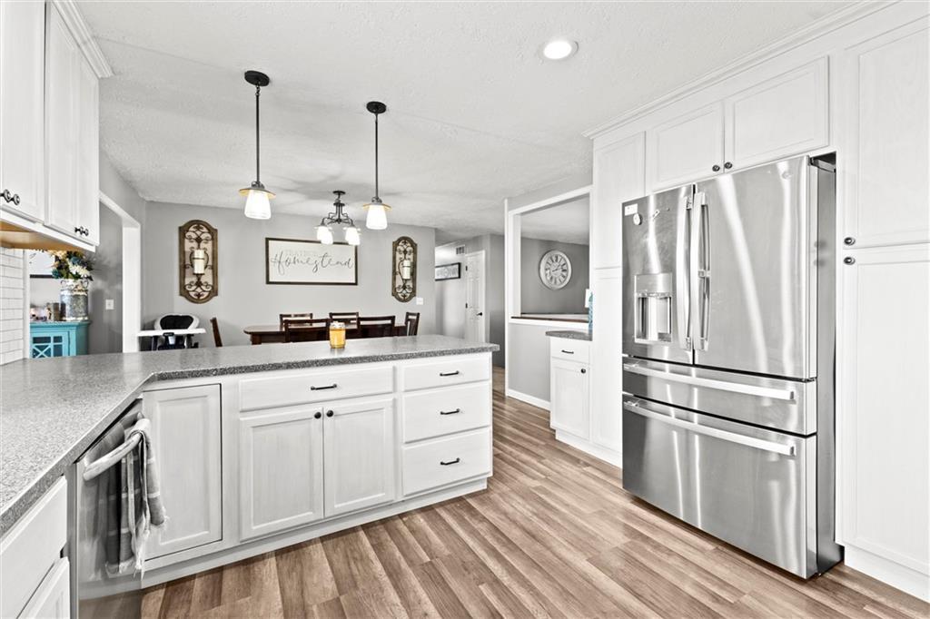 Have your cake and eat it too—country living with modern comfort!This charming, updated ranch sits on 3.4 peaceful acres with a fenced-in yard, a 2-car attached garage, and a barn with three additional garage bays—perfect for hobbies, projects, or extra storage. Bring your chickens to the coop, cast a line in the shared pond, or simply relax and take in the open views. Inside, the open-concept floor plan offers true main-level living with an inviting flow between living, dining, and kitchen spaces. The spacious primary suite features an updated ensuite bath and laundry tucked conveniently in the closet. With maintenance-free vinyl siding, easy highway access, and plenty of room to spread out, this property blends the best of both worlds—a cute updated ranch and your own slice of acreage.
