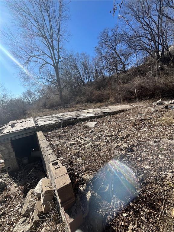 This land previously had a small 2 bedroom home on it, but there was a fire and only its foundation partially remains. Lot access is just before where you see the foundation of the home.