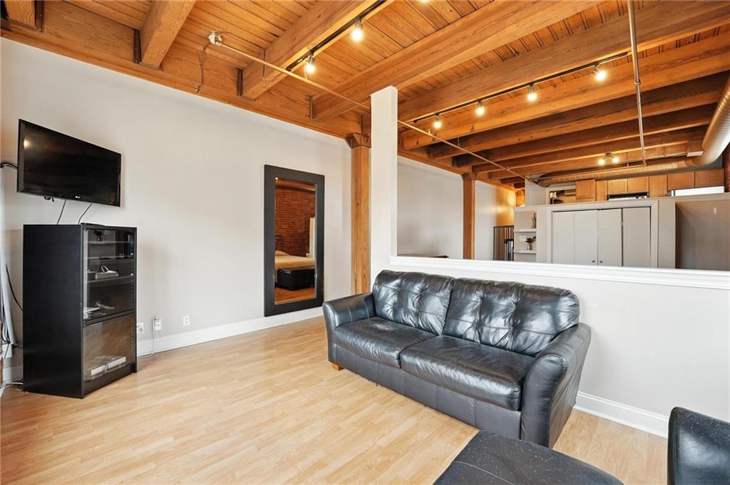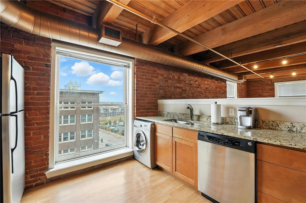 Historic charm, modern amenities, low HOA dues, and a downtown location that keeps you connected to the best of Kansas City-Welcome to Loft #412 in 700 Broadway at Soho, right in the Garment District. This 729 sq. ft. studio is all about style and substance, mixing exposed brick, rich hardwood floors, oversized windows, and a tongue-and-groove timber ceiling. The open layout carves out space for living, working, and sleeping, while the elevated kitchen overlooks it all. Outfitted with stainless steel appliances, granite counters, extended prep space, and plenty of room to move, it’s as functional as it is inspirational. You’ll also find a full bath, built-ins, ample closet space, an in-unit washer/dryer, and of course, those city views. Residents of this boutique building benefit from a gym, business lounge, game room with a kitchenette and bar, media room, laundry facilities, and bike storage. Parking is leased—attached garage spots are assigned by lottery, and a gated lot on Bank Street offers additional options. Step outside, and the city is yours. Grab coffee, dinner, or drinks nearby, wander the City Market for fresh finds, or hop the streetcar to explore the Crossroads, Power & Light District, and one day, Berkley Riverfront Park. Investor-friendly with rental potential, but no Airbnb. Offered fully furnished for a true turn-key investment.
