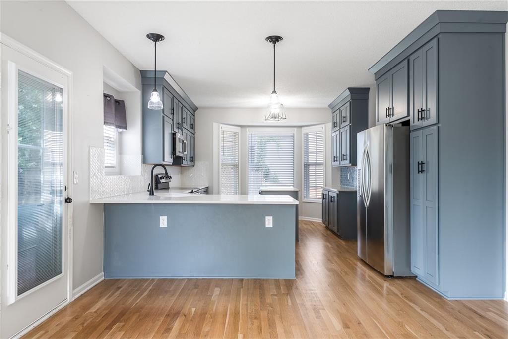 Stunning home that has been thoughtfully updated inside and out. New construction feel on a tree lined street! New or newer items including, roof and gutters, AC, light fixtures, kitchen cabinets updated, sink and faucet, backsplash, quartz countertops, gorgeous refinished hardwood floors, stair spindles and high traffic carpet on stairs, landscaping in the front and back yard, deck with pergola made with weather treated wood, epoxy coated garage floor for a clean, polished look, wall paint, trim paint, hardware on all doors, gas log fireplace with a remote control, half bath, laundry room tile. This home blends style, function and comfort ideal for both everyday living and entertaining. Spacious walk in closets in the super spacious primary suite, including a bonus room that can be used as additional closet space, office, nursery or a workout room. Large deck with pergola and level yard. The basement is finished with a full bathroom and wet bar perfect for entertaining. Unfinished area of the basement gives you plenty of storage room. With all major updates completed, all you need to do is move in! *Buyer's agent to verify all measurements, taxes, and school information.* All offers subject to lien holder release and lender acceptance of contract.