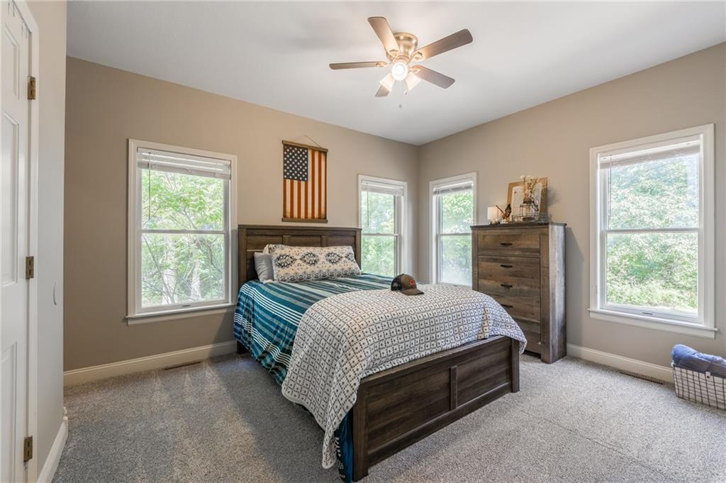MASSIVE PRICE REDUCTION!!! Nestled at the end of a serene, winding driveway, this exceptional country estate offers ultimate privacy and tranquility. Set on nearly 20 acres of picturesque land, this elegant home seamlessly blends refined living with the rustic charm of a working homestead. The expansive front porch invites you into a freshly renovated home, updated in 2023 with exceptional attention to detail and craftsmanship. Inside, the open-concept living space features a cozy living room, a chef-inspired kitchen, and a spacious dining area—all highlighted by exposed wood beams and two inviting wood-burning fireplaces, creating a warm, welcoming ambiance. Designed for both luxury and functionality, this residence offers six bedrooms and six bathrooms, including generous master suites and ample guest accommodations. A dedicated home office provides a peaceful space for remote work, while the expansive laundry and utility room offers tons of storage. The finished walkout basement serves as the perfect area for entertaining, recreation, or additional living space. Outside, the property reflects its homestead roots, with a charming chicken coop and plenty of space for gardens, walking trails, or outdoor gatherings. The nearly 20-acre property also offers easy access via blacktop roads, with the added benefit of low Lafayette County taxes. Every corner of this home, from its exquisite décor to its breathtaking views of the rolling countryside, has been thoughtfully designed to offer a perfect blend of elegance, practicality, and privacy—all just minutes from town.