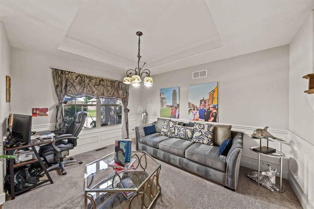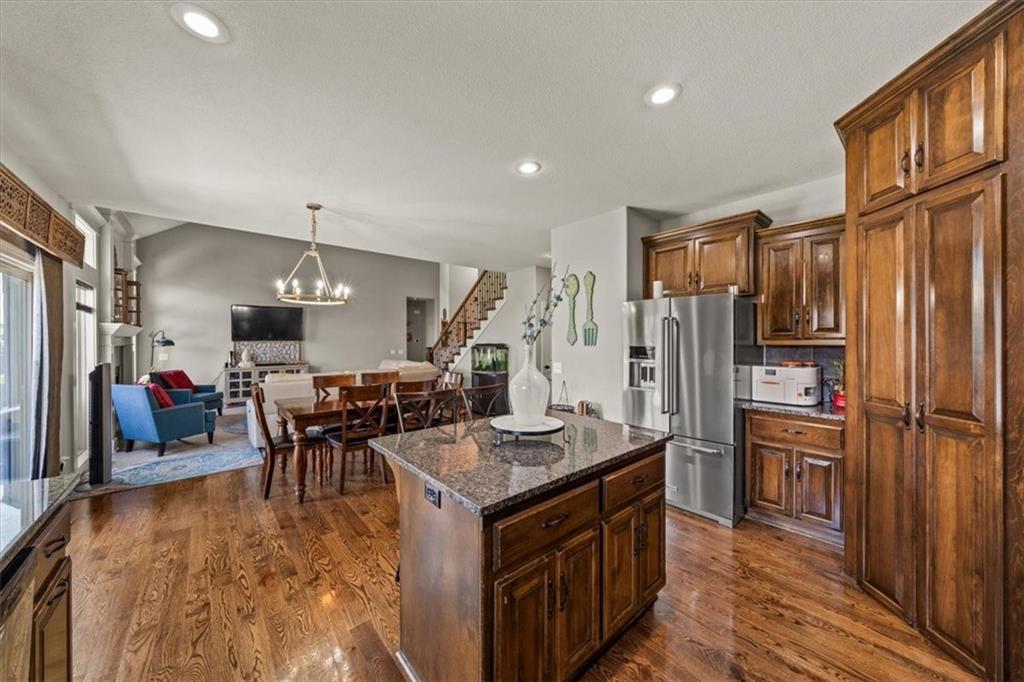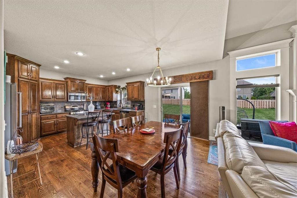 Back active again through no fault of sellers. Welcome to this beautiful 1.5-story home located in the highly sought-after Tiffany Woods neighborhood, within the prestigious Park Hill School District. Built in 2013, this residence offers a spacious and open floor plan ideal for both entertaining and everyday living. Featuring a main level luxurious master suite, a generous walk-in closet, double vanities, a Jacuzzi tub, and a shower for the ultimate retreat. A gourmet kitchen with granite countertops, stainless steel appliances, a walk-in pantry, and gleaming hardwood floors. The open-concept design flows seamlessly into the dining and living areas, creating a warm and welcoming space perfect for family gatherings. A formal living room provides additional space for entertaining or quiet gatherings. The convenience of a main level laundry room adds everyday functionality to this elegant layout. The second level boasts a large loft area, 3 generously sized bedrooms, and 2 full bathrooms, providing plenty of room for relaxation, play, or a home office. The fully finished lower level expands your living space with a large family room, a wet bar equipped with a dishwasher and a place to hold a refrigerator, a bedroom, and an additional full bathroom ideal for guests or multigenerational living. Outside, enjoy a private patio and a level backyard with an in-ground sprinkler system, perfect for relaxing or entertaining. Residents of this vibrant community also have access to walking trails and a neighborhood pool. Located just minutes from Zona Rosa’s shopping and dining options and only minutes from the new Kansas City International Airport, this home offers unmatched convenience and lifestyle. With a 3-car garage wired and ready for EV charging, this home is a rare find. Don’t miss your chance to make it yours! Schedule a showing today.