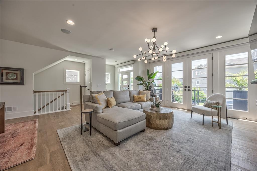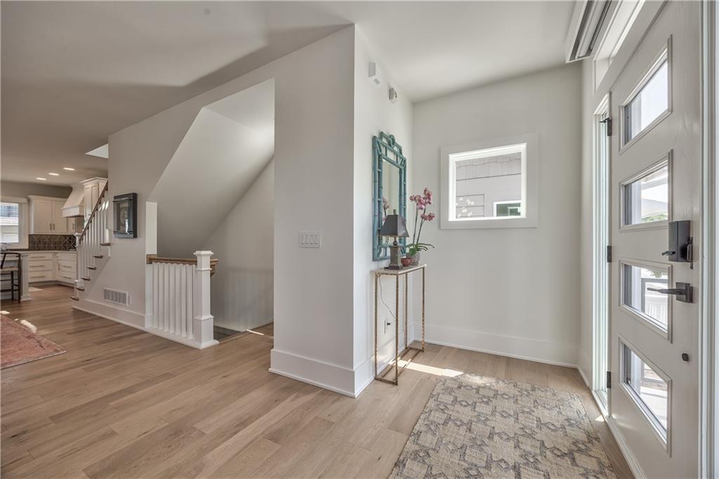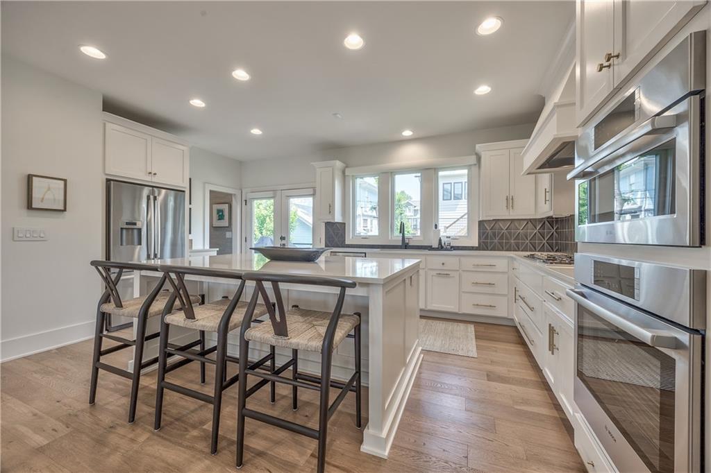Exceptional new construction in the heart of the Plaza blending elevated design with everyday comfort. This 3 bedroom, 2.5 bathroom home features bold black/glass garage-an entry that makes a statement. Inside the open & spacious floor plan features a huge great room with 8 ft french doors to balcony. The designer kitchen stuns with a massive 7x5 quartz island, Bosch appliances, 36" gas cooktop, under-cabinet lighting and a wallpapered walk-in pantry that adds a touch of personality. The vaulted primary suite is a private retreat, complete with a custom closet & spa-level bath featuring heated floors, floating double vanity, quartz counters and an oversized triple-head shower. Two additional bedrooms offer comfort & versatility with custom closets. Step outside to two level composite decks w/ Fortress cable railing - perfect for entertaining. Smart upgrades throughout: Lutron motorized shades, solid core doors, premium lighting, high efficiency Lennox HVAC, argon glass windows, built in speakers and full security system with cameras. A rare blend of luxury & location - just steps from the Plaza. Owner/Agent.