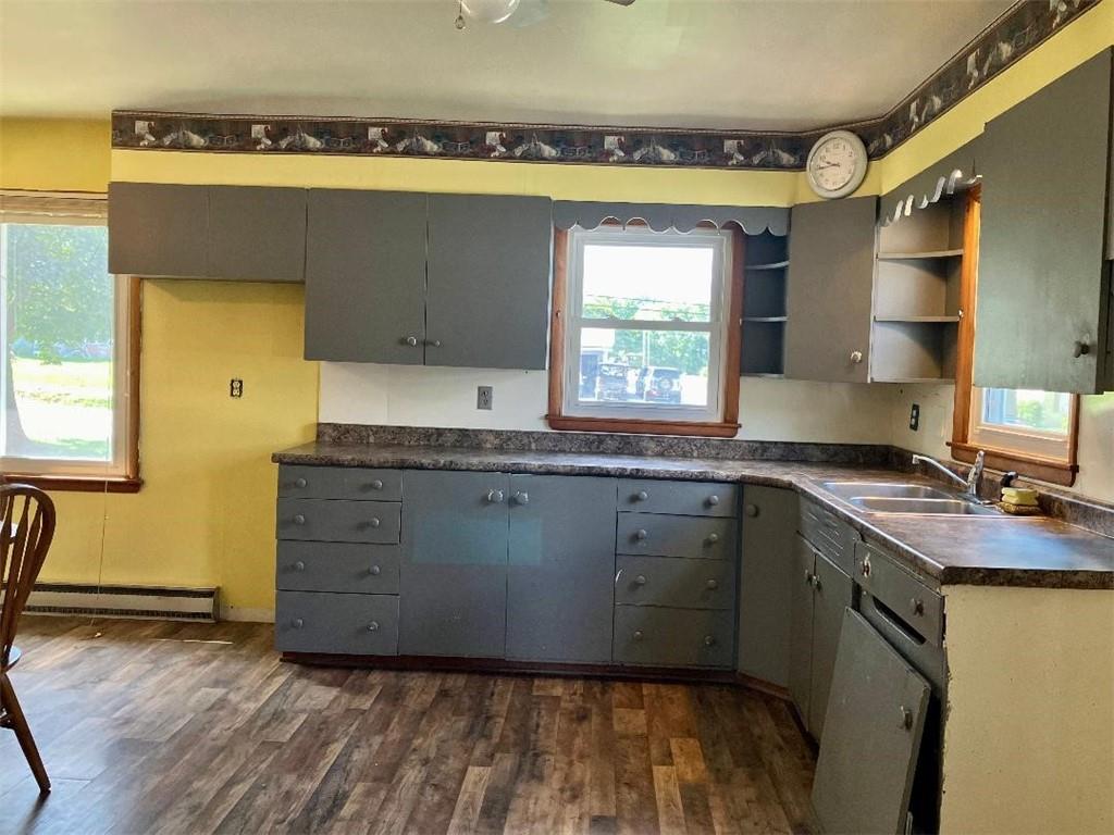 This home is quite spacious! Walk in to a wide open Living Room, Dining Room and Kitchen combination that is amazing! Great for family gatherings! Very nice garage and big yard! This two bedroom home offers a sitting porch in the front at the entry, and a good sized patio between the garage and the home! The Laundry Room has a lot of space, with a huge closet and a walk out to the back yard! This would make anyone a great place to live!