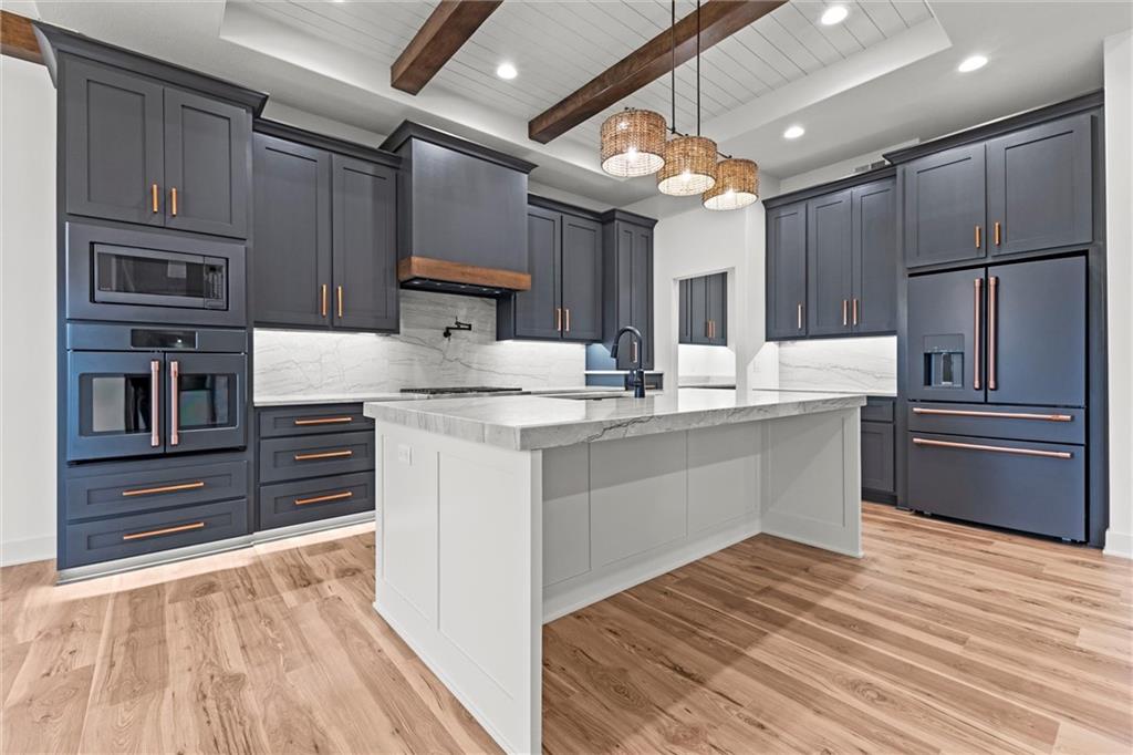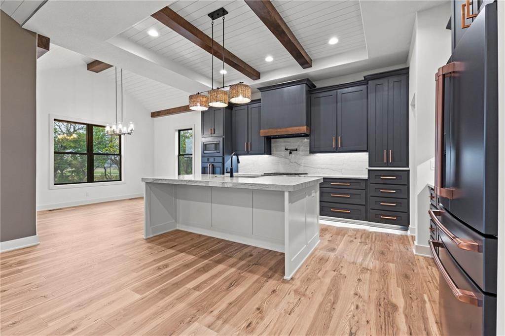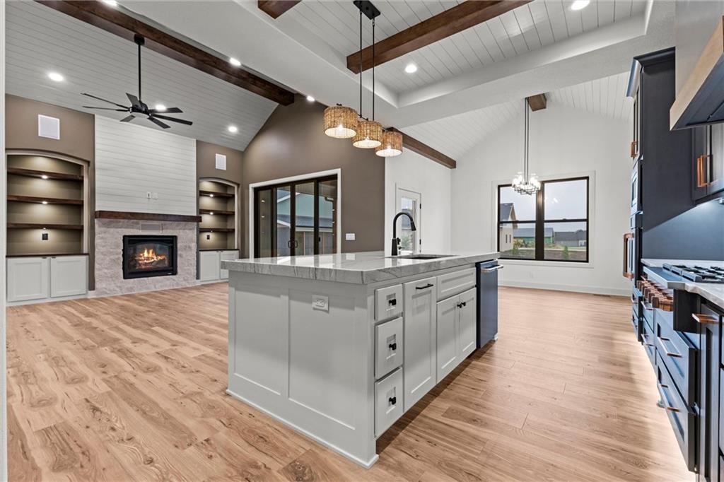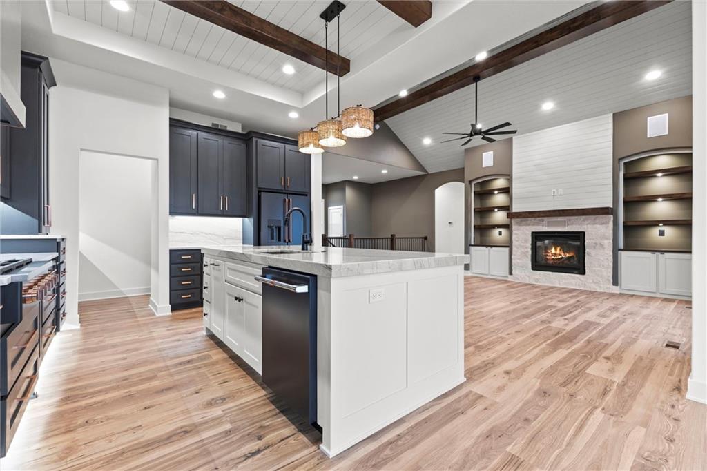 Beautiful custom home by Bryant Construction Group situated on 2.5 acres with custom upgrades throughout. This 5-bedroom, 4-bath property features a gourmet kitchen with walk-in pantry and custom cabinetry, a primary suite with custom closet, and an additional laundry closet in the basement. Zoned HVAC, heated garage, and upgraded insulation provide year-round comfort. Outdoor living includes a patio off the kitchen, a screened rear patio, fire pit, and sprinkler system. A detached 40x50 shop with 12- and 16-foot ceilings includes septic, water, propane, 200-amp panel, and bathroom stub-in—ideal for a guest suite, workshop, or hobby space. Property is agent owned.