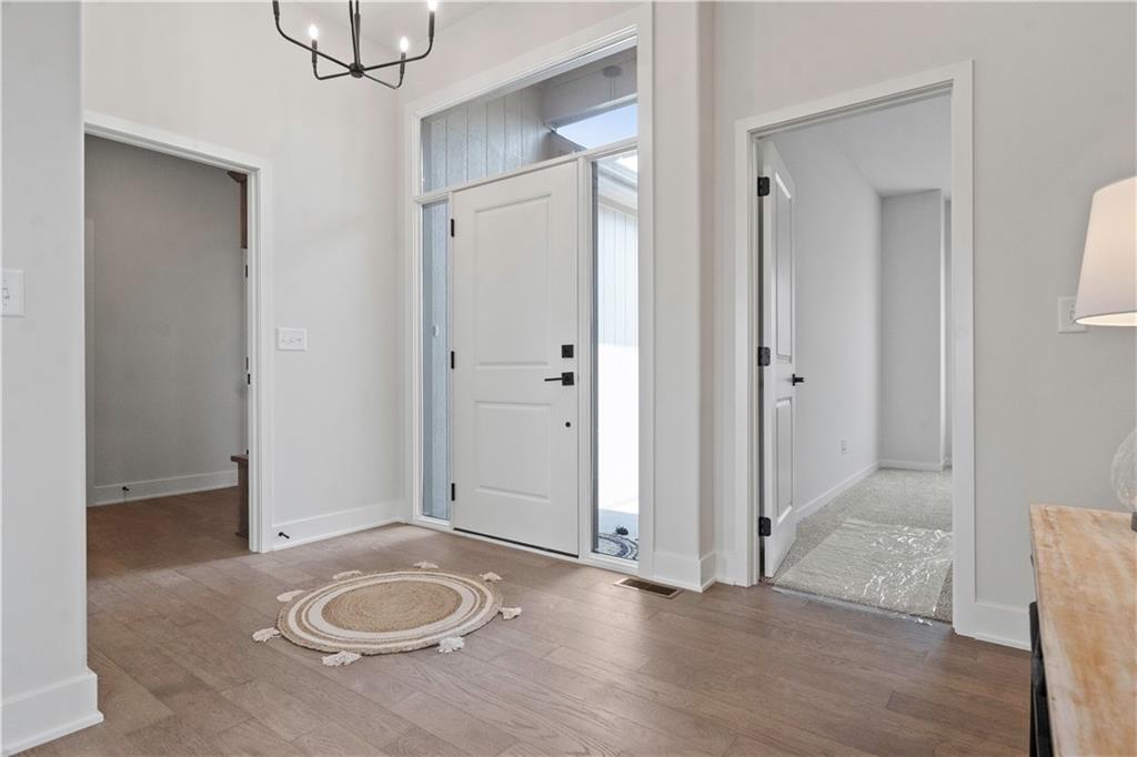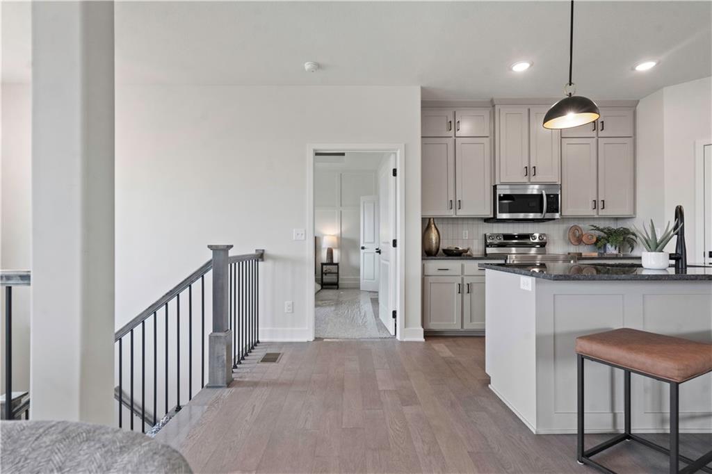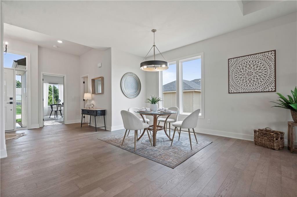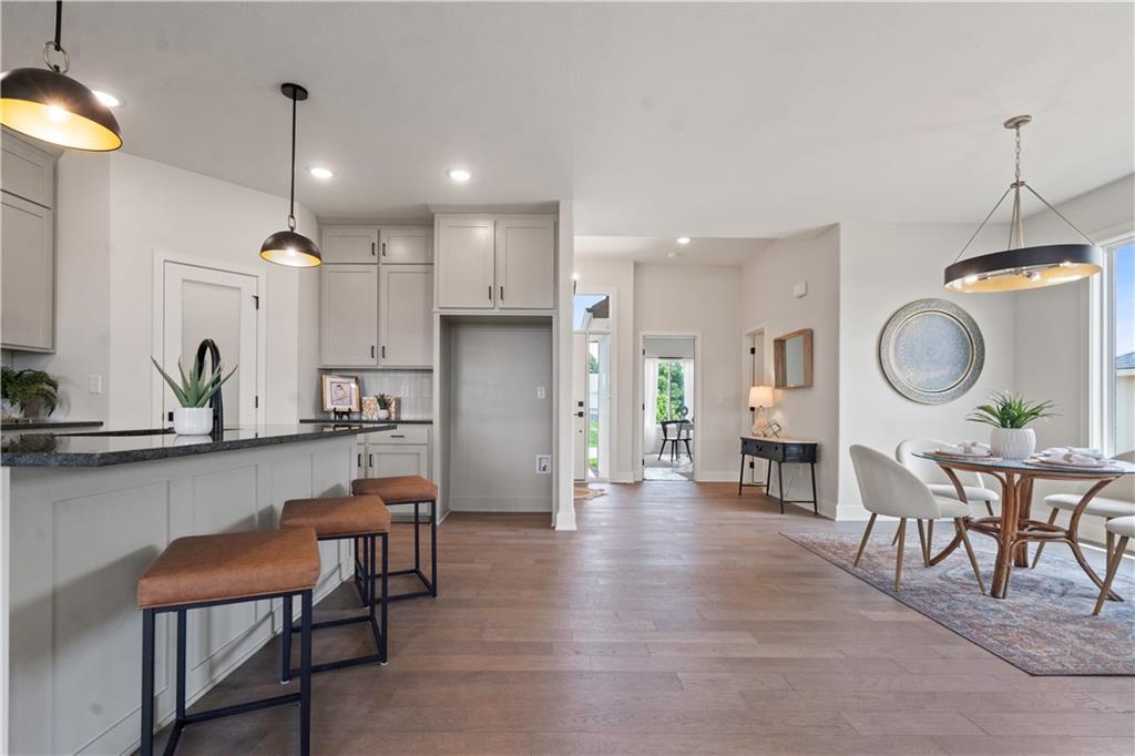 Introducing the stunning Meadowcroft II Reverse by DRHI ! This thoughtfully designed home features a bright and inviting Great Room with an elegant electric fireplace framed in tile. Oversized double doors flood the open-concept main living area with natural light, leading to a covered 16x10 deck overlooking a serene pond. The chef’s kitchen boasts custom cabinetry, a stylish tile backsplash, solid-surface countertops, and an electric cooktop, all perfectly complemented by gleaming hardwoods flowing through the Great Room, kitchen, dining area, mudroom, and pantry. Downstairs, enjoy a finished walkout basement that opens to a covered patio, perfect for relaxing or entertaining. Retreat to the luxurious primary suite featuring a walk-in tiled shower and beautiful tile finishes. Nestled in the highly sought-after Foxberry Estates, residents enjoy resort-style amenities including a pool, clubhouse, scenic trails, and playgrounds. Home is under construction and final pricing is subject to change.