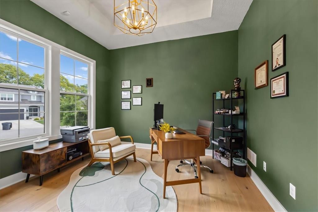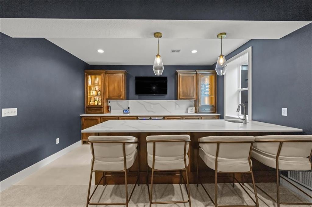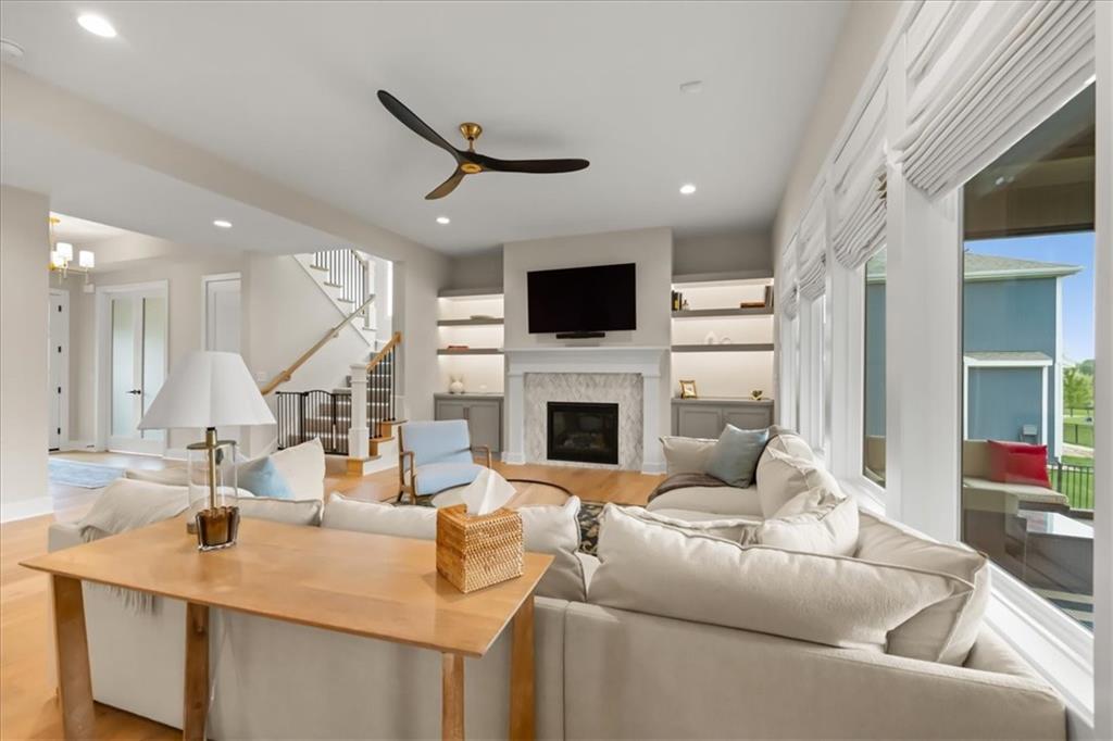 This is the one buyers wait for. Over $120K in seller upgrades — on top of original model-home finishes — this stunning Cooper by Roeser Homes is truly a standout. Originally a model and loaded with premium details, this home blends luxury with everyday comfort. Sunlight fills the open layout, highlighting rich wood floors, designer touches, and a dramatic floor-to-ceiling fireplace with custom built-ins. A private main-level office creates the perfect work-from-home retreat. The gourmet kitchen is the heart of the home, featuring a large quartz island, soft-close cabinetry, under-cabinet lighting, walk-in pantry, and a built-in buffet in the dining area for effortless entertaining. Step onto the covered 18x13 porch or relax on the screened-in deck — ideal for morning coffee or hosting friends year-round. Sellers invested an additional $115k to finish the dream basement, offering incredible flexibility for entertaining, movie nights, game days, or hosting guests in style. Upstairs, the vaulted loft provides bonus living space, while generously sized bedrooms and a dedicated play area give everyone room to spread out. The luxurious primary suite feels like a private escape with dual quartz vanities and a spa-inspired frameless glass shower. An epoxied garage floor, fresh paint, and designer wallpaper accents make this home truly move-in ready. Located in the sought-after Boulder Hills, residents enjoy resort-style amenities including a luxury pool, covered outdoor fireplace, playground, pickleball courts, putting green, and access to nearby Heritage Park trails and green space. Homes like this rarely come available. If sellers didn't have to relocate out of state, they would stay forever. Schedule your tour today and be ready to fall in love. Furnishings are negotiable.