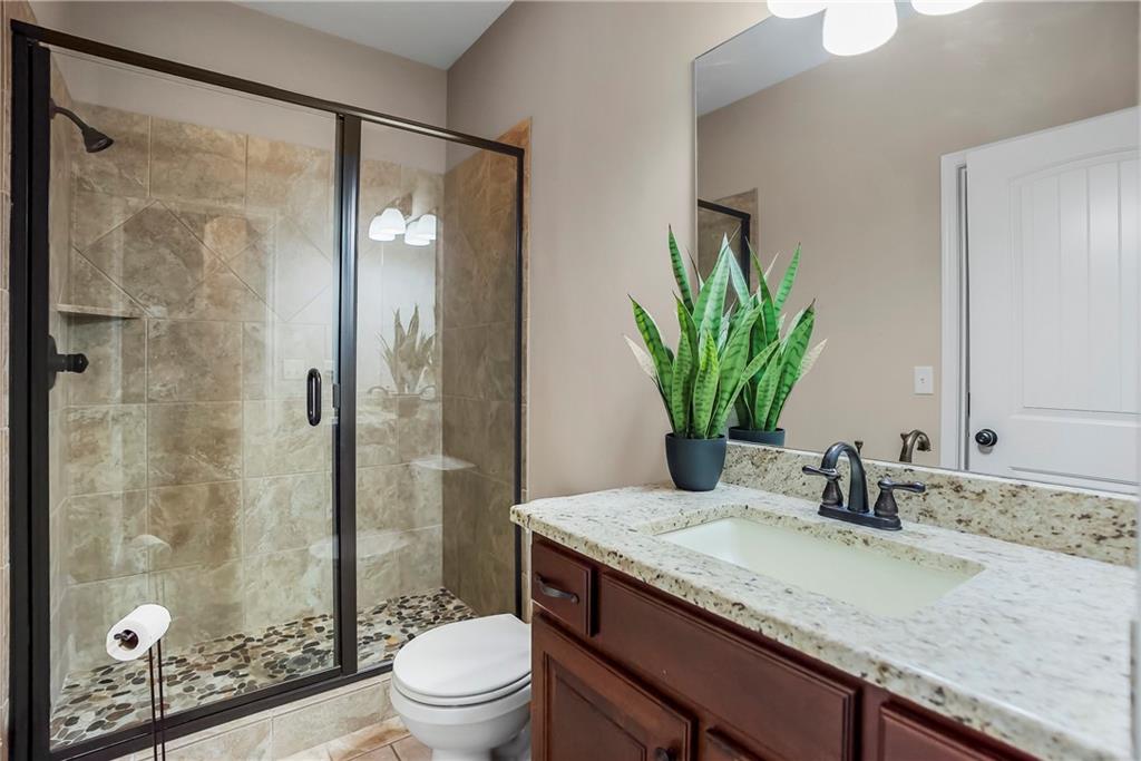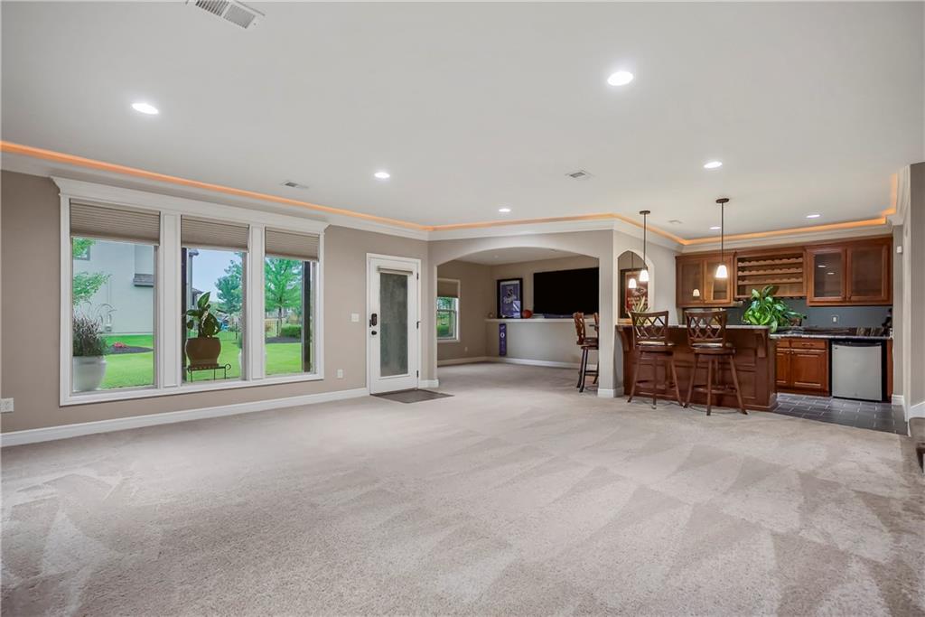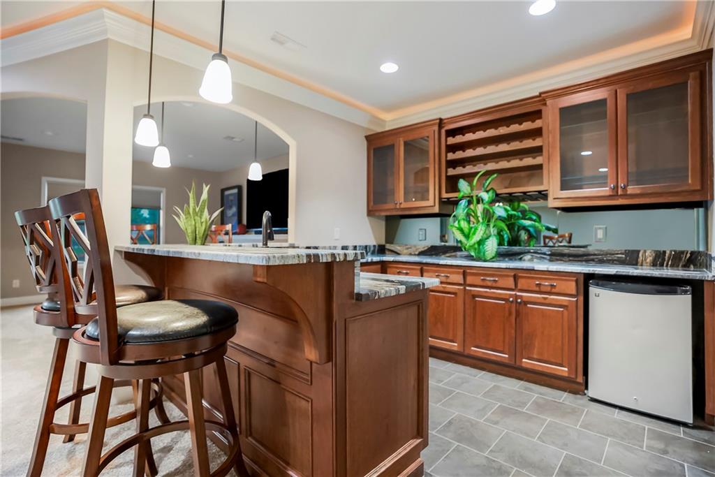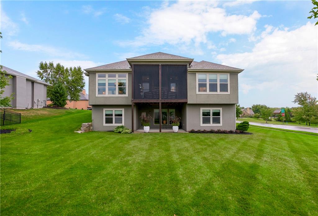 Sensational walk-out Reverse story and a half in Polo Fields! Enjoy the expansive great room that has a direct vent see through fireplace. The great room is open to the kitchen and dining room. There are hardwood floors from entry, great room and throughout the kitchen. The kitchen has a large island, granite tops, stainless steel appliances, and a walk-in pantry. The laundry room off kitchen w/utility sink.*Very well maintained home with a huge finished lower level with 2 rec rooms and wet bar with granite tops plus 1/2 bath off bar area. The lower level also has 2 bedrooms with full bath between off the rec room and storage. The home has a screened in private covered deck on the main level plus a patio off the lower level to take in the outdoors. *All stucco exterior*Walk-out LL*Ample storage*Instant Hot Water Tank*Storm shelter*Huge oversized 3 car garage with heaters and super bright lights*Sprinkler system