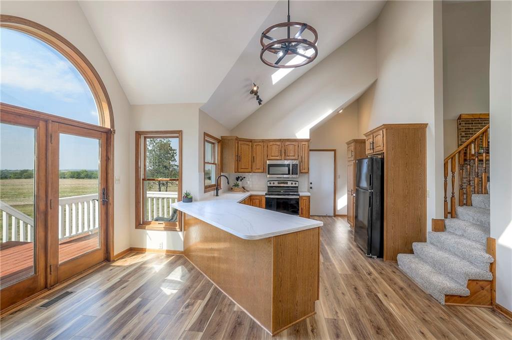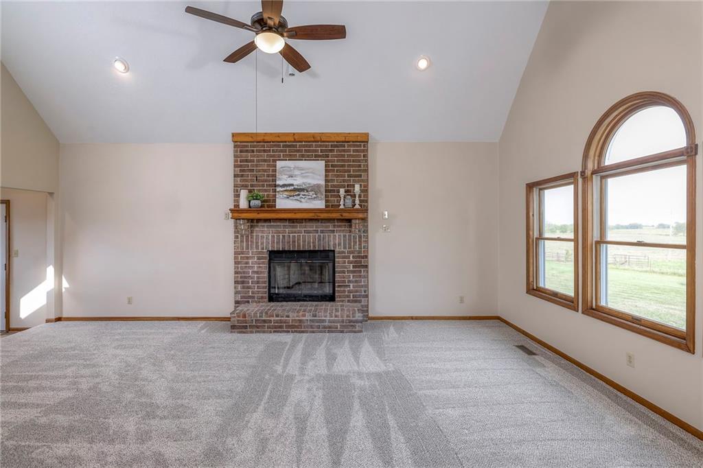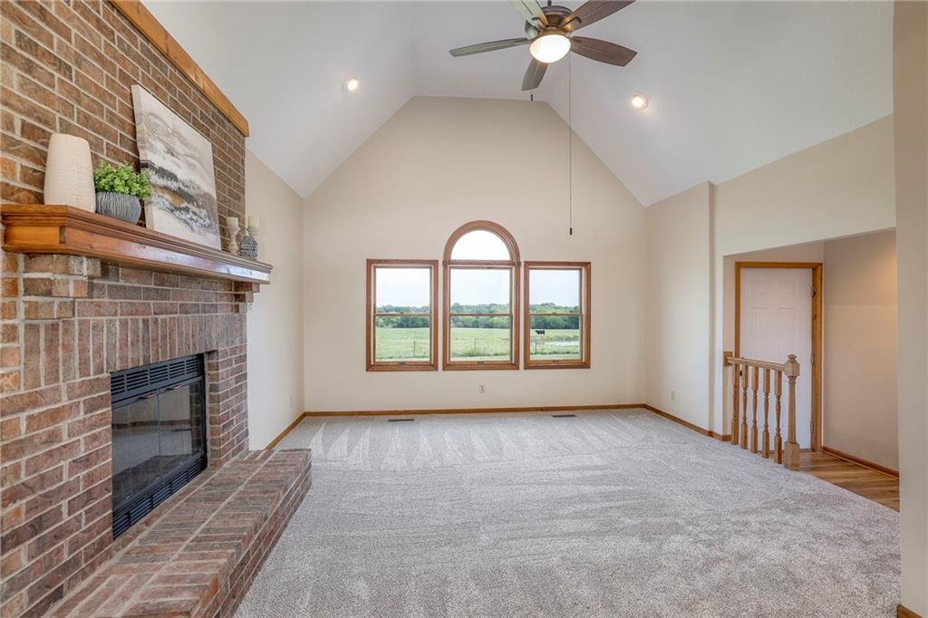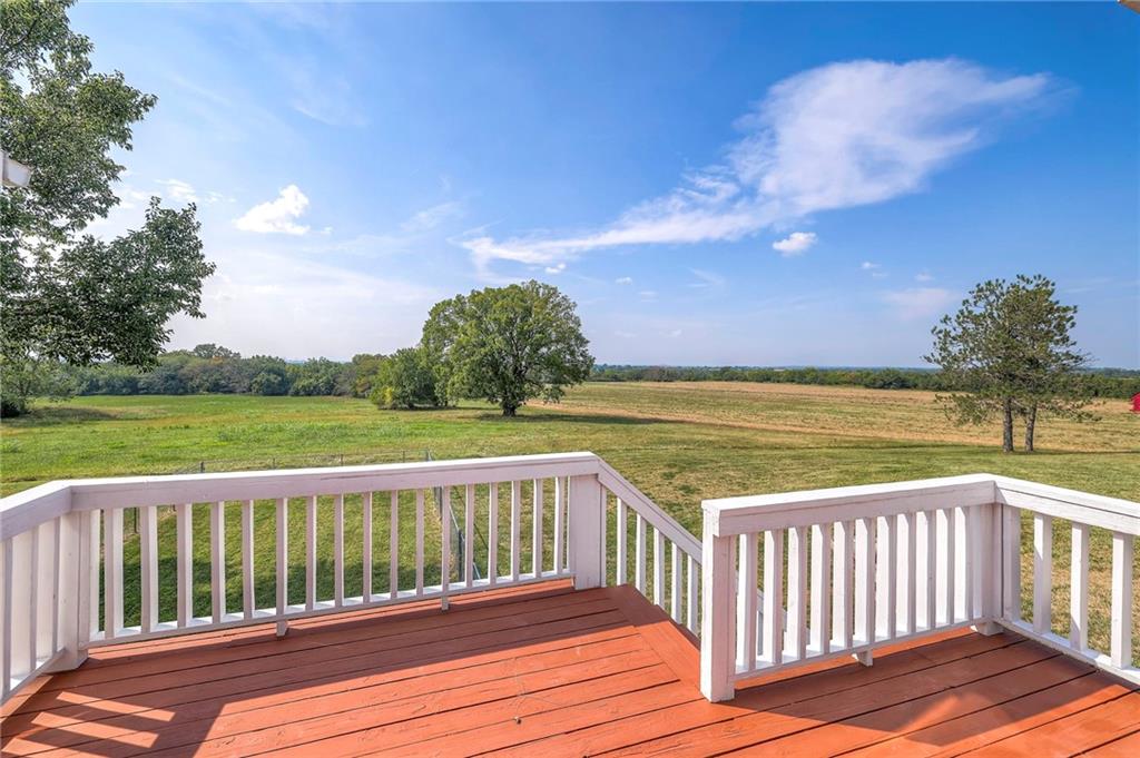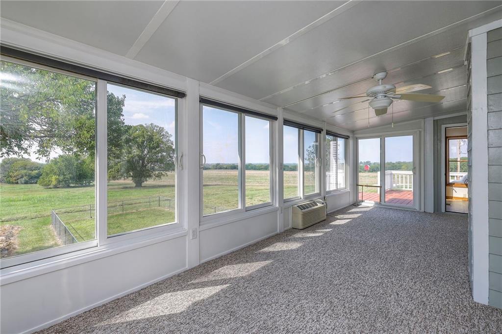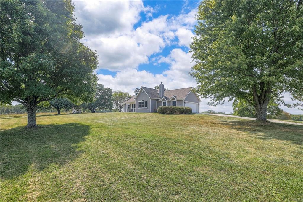 Dreamy and peaceful property situated on 57 acres, located less than 4 miles from Paola schools, shopping, and Lake Miola. A long scenic driveway leads you to this updated 1.5-story home, offering the perfect blend of comfort and country living. Inside, you’ll find a turn-key residence featuring an updated kitchen with new countertops, stainless steel range and microwave, fresh interior paint, new flooring throughout, and a brand-new roof. The spacious main-level living room boasts vaulted ceilings, a cozy fireplace, and views of the front pond, while a bonus sunroom just off the kitchen provides the ideal spot to enjoy west-facing sunsets. Step outside to the large deck conveniently located off the kitchen perfect for BBQ gatherings with friends and family. The main level also includes a secondary bedroom and the primary suite, complete with an updated en-suite bathroom featuring a large shower and double vanity. The finished walk-out lower level offers additional living space with a bedroom, full bathroom, and large family room that opens to a patio and fenced yard perfect for kids and pets. Outdoor living shines with wide open spaces, a patio, and a sunporch designed to capture year-round sunset views. Come enjoy the views and bring an offer, seller is motivated. For those with horses or cattle, the land offers two picturesque ponds, one nestled in a fully fenced, 20-acre pasture. Outdoorsmen will appreciate the hunting opportunities across the 57 acres, while families will love the peace and privacy. It’s a property that blends country living with endless possibilities. Not into farm animals? You can lease out the pasture to another local farmer and still be able to enjoy your peaceful property and those amazing sunset views!
