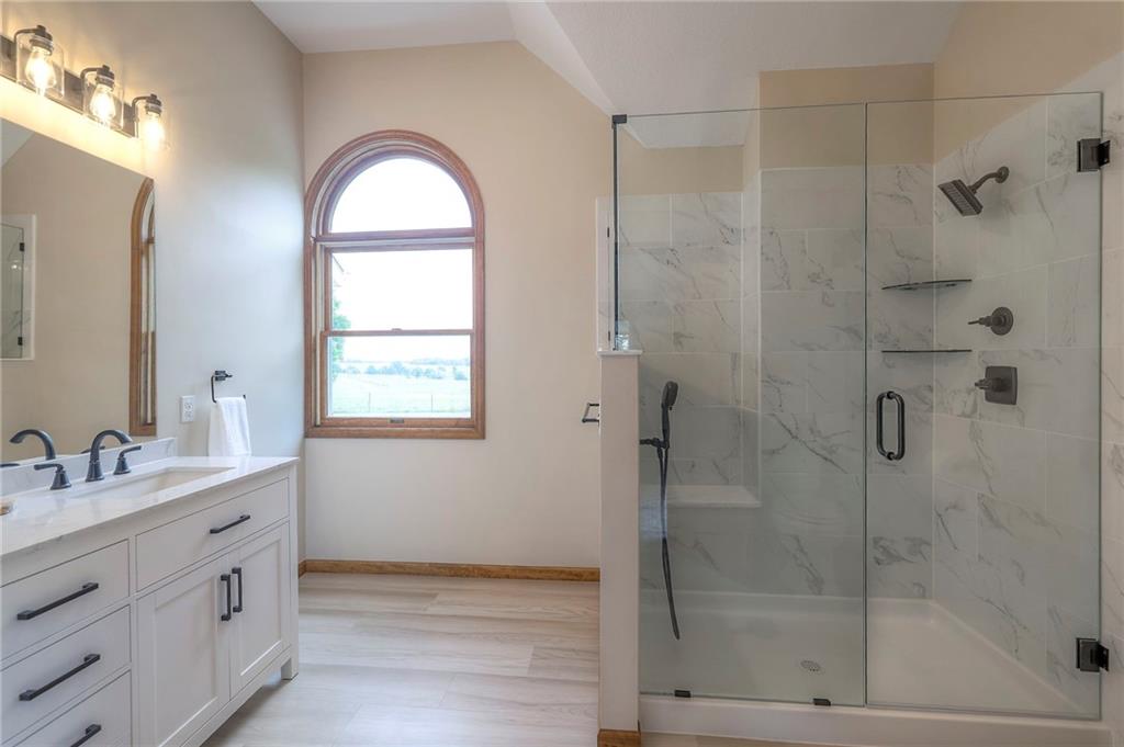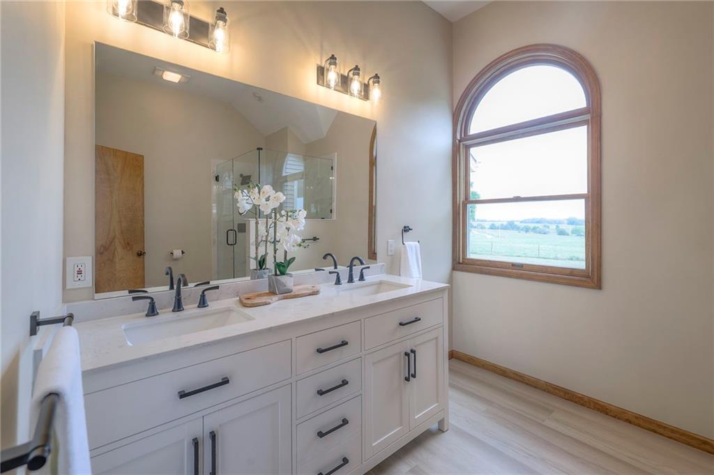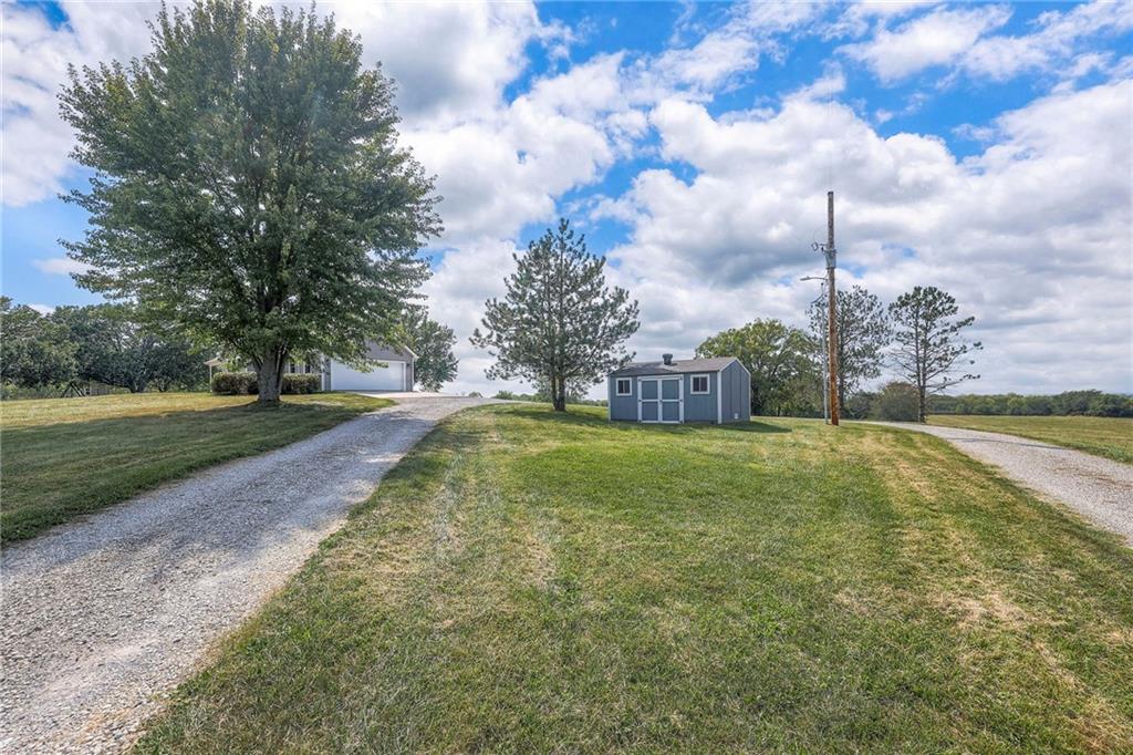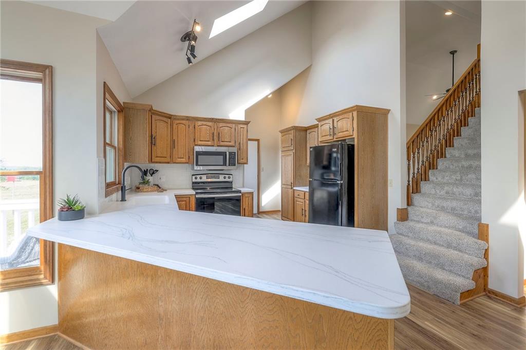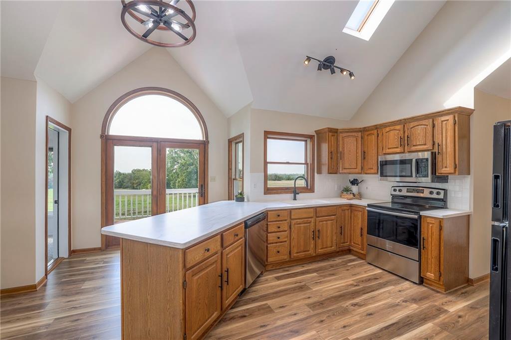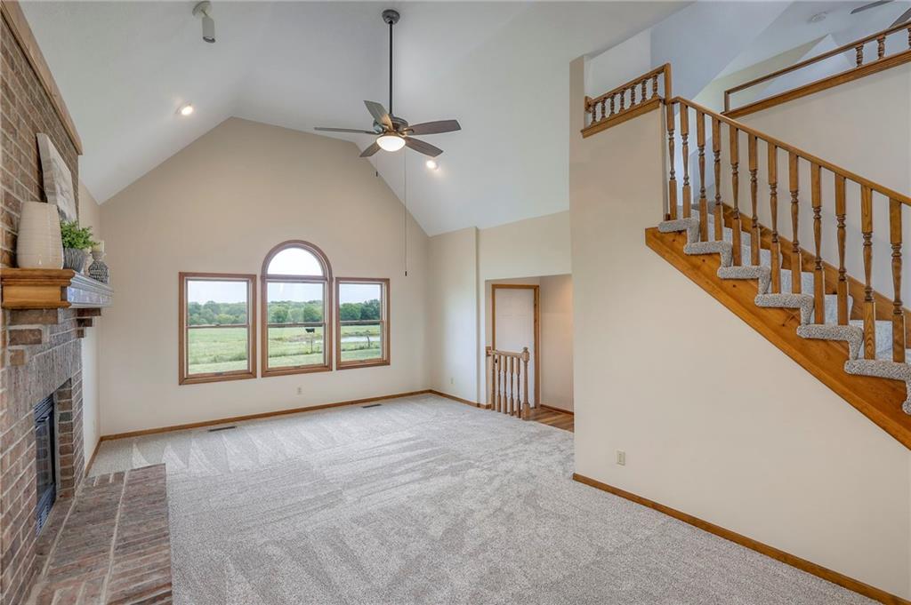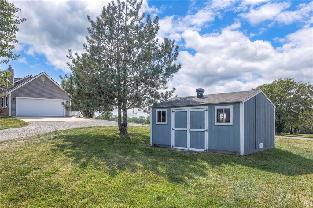 Dreamy and peaceful property situated on 57 acres, located less than 4 miles from Paola schools, shopping, and Lake Miola. A long scenic driveway leads you to this updated 1.5-story home, offering the perfect blend of comfort and country living. Inside, you’ll find a turn-key residence featuring an updated kitchen with new countertops, stainless steel range and microwave, fresh interior paint, new flooring throughout, and a brand-new roof. The spacious main-level living room boasts vaulted ceilings, a cozy fireplace, and views of the front pond, while a bonus sunroom just off the kitchen provides the ideal spot to enjoy west-facing sunsets. Step outside to the large deck conveniently located off the kitchen perfect for BBQ gatherings with friends and family. The main level also includes a secondary bedroom and the primary suite, complete with an updated en-suite bathroom featuring a large shower and double vanity. The finished walk-out lower level offers additional living space with a bedroom, full bathroom, and large family room that opens to a patio and fenced yard perfect for kids and pets. Outdoor living shines with wide open spaces, a patio, and a sunporch designed to capture year-round sunset views. Come enjoy the views and bring an offer, seller is motivated. For those with horses or cattle, the land offers two picturesque ponds, one nestled in a fully fenced, 20-acre pasture. Outdoorsmen will appreciate the hunting opportunities across the 57 acres, while families will love the peace and privacy. It’s a property that blends country living with endless possibilities. Not into farm animals? You can lease out the pasture to another local farmer and still be able to enjoy your peaceful property and those amazing sunset views!
