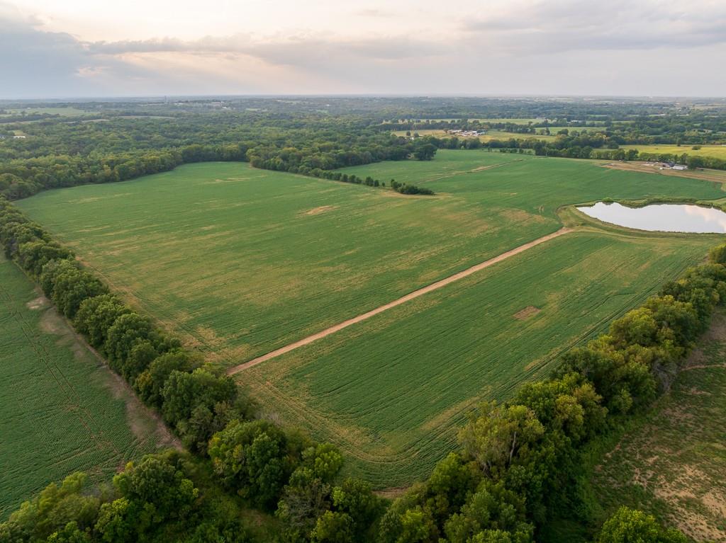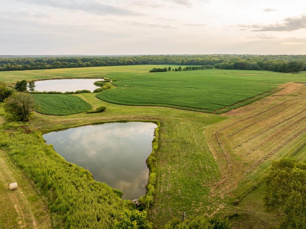 Located in southeastern Cass County, this 155.83 ± acre farm combines fertile soils, recreational opportunity, and breathtaking scenery. With a balance of productive farmland, mature timber, and water features, it offers versatility for both investment and lifestyle. Approximately 108 acres are tillable, featuring fertile soils and competitive cash rent. Another 28 acres of mature timber provide cover for wildlife, along with excellent deer and turkey hunting. The property is fenced and well suited for multiple uses. Recreational appeal is highlighted by 4.6 surface acres of stocked water, plus additional creek frontage. Panoramic views stretch across the South Grand River bottoms, with an elevated homesite offering a stunning vantage point. The gently-sloping terrain delivers over 50 feet of elevation change, adding both character and beauty. Multiple access points make the property highly functional while still providing privacy. County water, power, and fiber internet are all available at the road. The property lies within the Sherwood School District and adjoins the expansive Settles’ Ford Conservation Area for additional outdoor opportunity. This is a rare chance to own a farm that offers agricultural income, hunting and fishing, and a one-of-a-kind setting for your dream homesite.