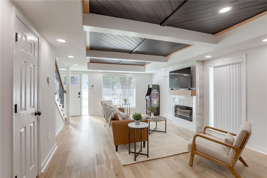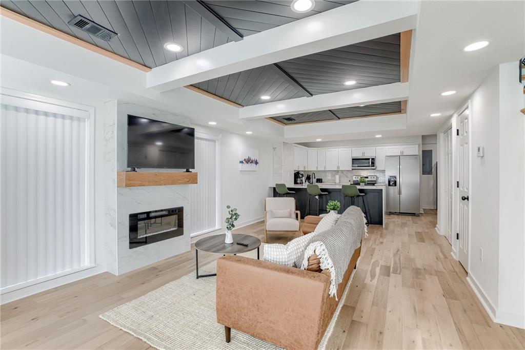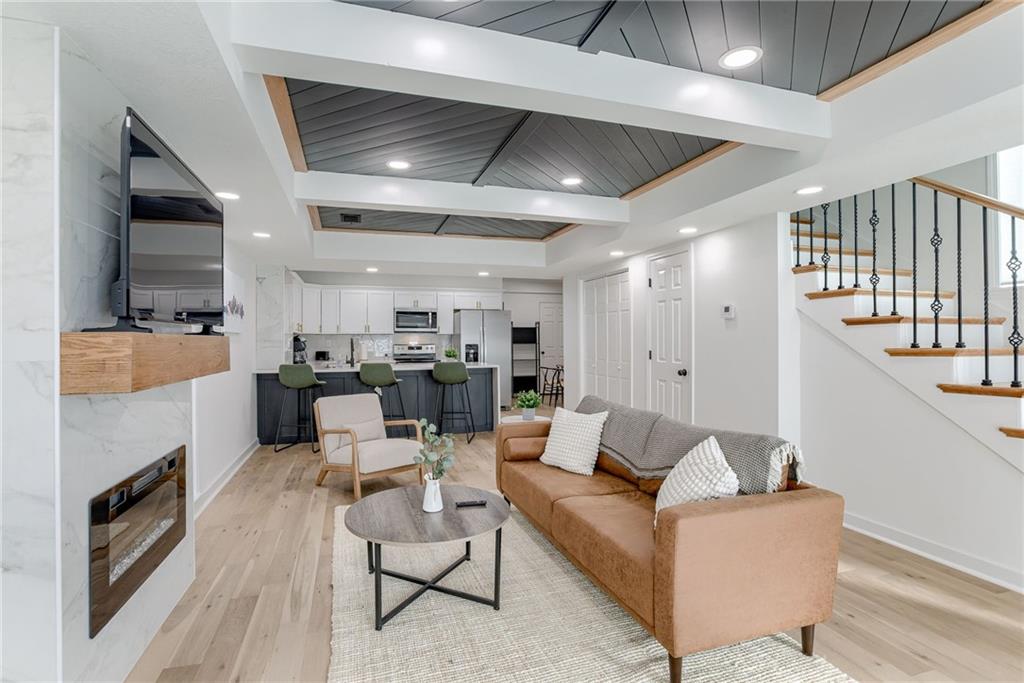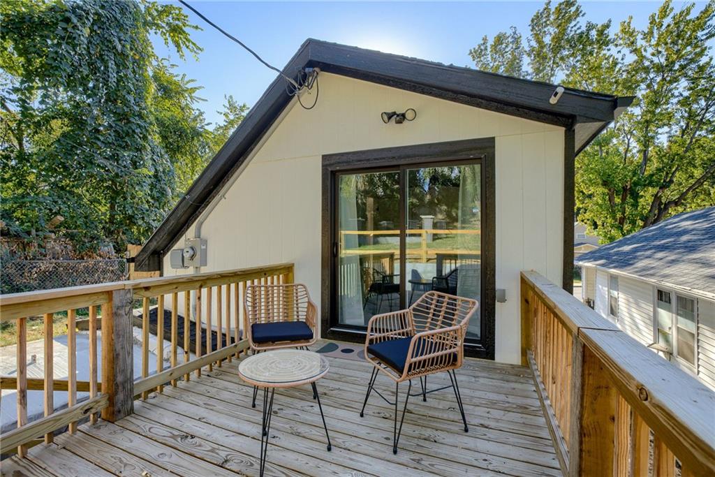 Beautiful turnkey three bedroom, two bath home currently operating as a successful Airbnb-sold fully furnished! Completely renovated just two years ago with a new roof, HVAC, water heater, windows, plumbing, electric, and much more. Step inside to modern flooring, abundant natural light, and stunning architectural ceiling details. Enjoy a cozy fireplace, bright white kitchen with stainless steel appliances, ample cabinetry, and stylish countertops that flow seamlessly into the kitchen-dining combo. Both bathrooms feature exquisite tiling and sleek modern vanities. The primary suite offers direct access to a spacious deck overlooking a private yard, perfect for entertaining, plus a patio with fire pit potential. Located just one block from Prescott Plaza, within walking distance to El Torito Supermarket, and minutes from Kensington Park, KU Med, downtown, and the Country Club Plaza. Quick access to 1-70, 1-635, and 1-35 makes commuting a breeze. A truly move in ready property where no details has been spared!