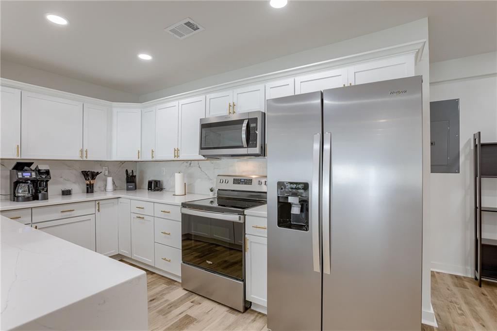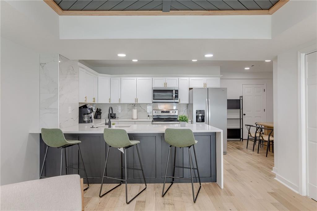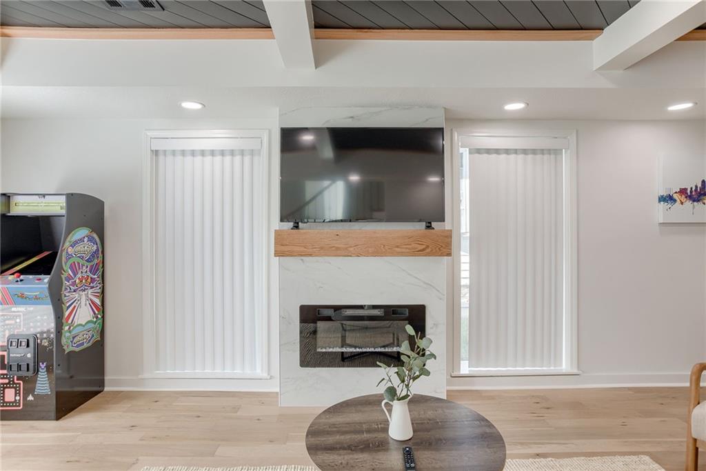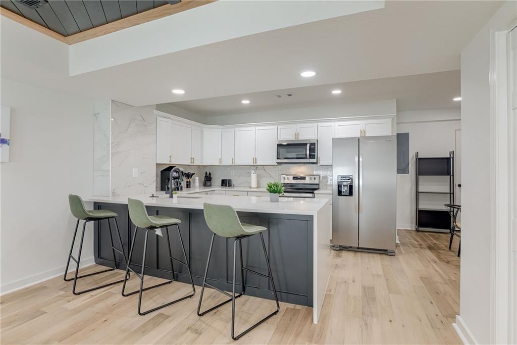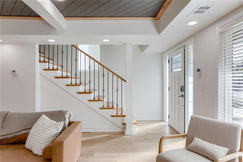Beautiful turnkey three bedroom, two bath home currently operating as a successful Airbnb-sold fully furnished! Completely renovated just two years ago with a new roof, HVAC, water heater, windows, plumbing, electric, and much more. Step inside to modern flooring, abundant natural light, and stunning architectural ceiling details. Enjoy a cozy fireplace, bright white kitchen with stainless steel appliances, ample cabinetry, and stylish countertops that flow seamlessly into the kitchen-dining combo. Both bathrooms feature exquisite tiling and sleek modern vanities. The primary suite offers direct access to a spacious deck overlooking a private yard, perfect for entertaining, plus a patio with fire pit potential. Located just one block from Prescott Plaza, within walking distance to El Torito Supermarket, and minutes from Kensington Park, KU Med, downtown, and the Country Club Plaza. Quick access to 1-70, 1-635, and 1-35 makes commuting a breeze. A truly move in ready property where no details has been spared!
