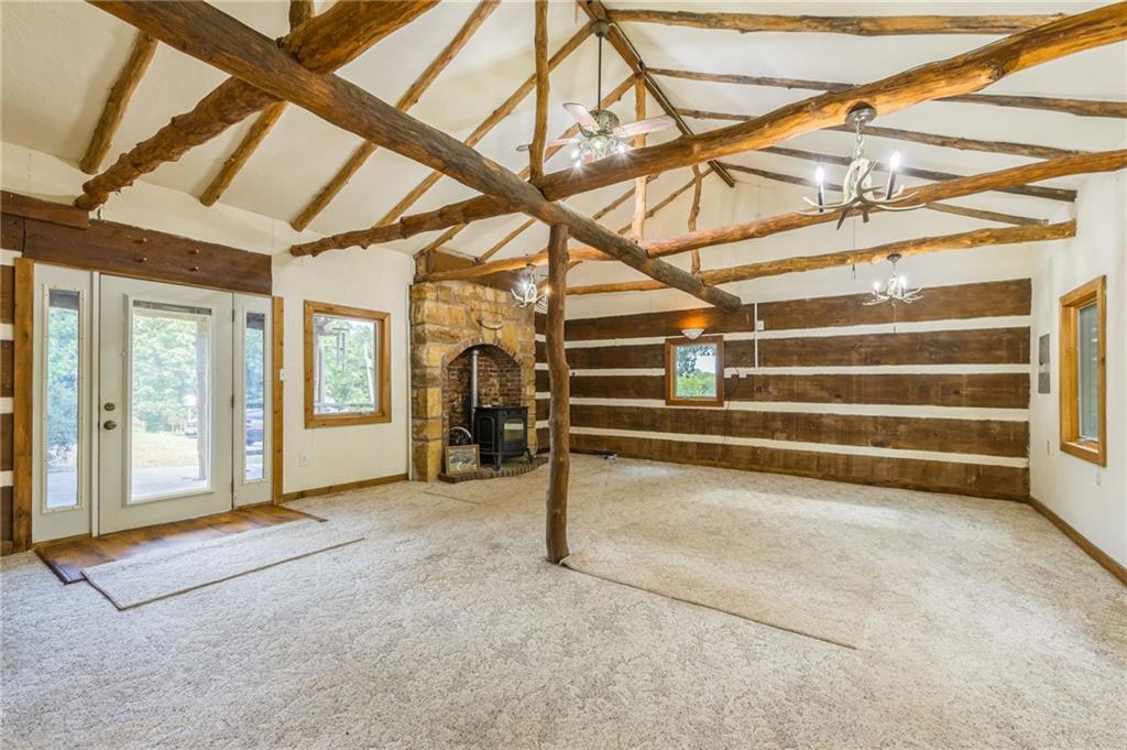Looking for an amazing retreat not far from the city? Want to be able to hunt on your own 13 acres of land? As you drive through the stone entrance and wind up the treelined drive you already feel the stress leave. When you come into the clearing you see a 2 bedroom log cabin overlooking rolling hills. The beamed ceiling and log walls take you back to an era where things were slower and more peaceful. Whether you want to live here permanently in peace or use it as a retreat this home will meet your needs. There are also two large outbuildings on the property.