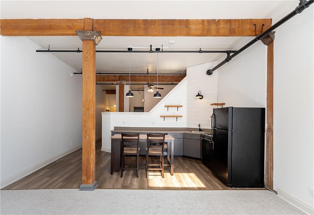At 308 W 8th Street, you get the full downtown experience: exposed brick, sky high ceilings, and oversized windows that flood the space with natural light. The open concept kitchen with its large island anchors the home, making it just as easy to host friends as it is to enjoy a quiet night in. Add in a completely repainted interior and brand new carpet, and the space feels fresh, move-in ready, and yours from day one.