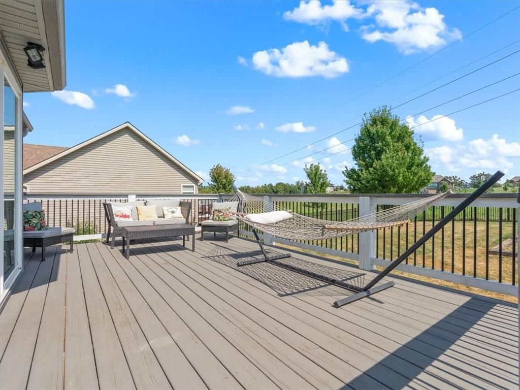 This 3-bedroom, 3-bath home sits on a peaceful cul-de-sac, just minutes from shopping, dining, and highways. The main floor offers a bright family room with fireplace, an updated kitchen with white cabinets, under-cabinet lighting, and beautiful counters, plus the convenience of main floor laundry. Two bedrooms share a full bath, while the spacious primary suite includes its own bath and walk-in closet. The finished lower level adds a second family room, full bath, and walk-out access to the oversized two car garage. Perfect for entertaining, home office space, or movie nights. Enjoy the outdoors with a newer deck, patio, fenced backyard, and fresh landscaping. Recent updates include a new heat pump, interior paint, storm door, updated lighting, hardwood floors, carpet, and a hot water heater tune-up.