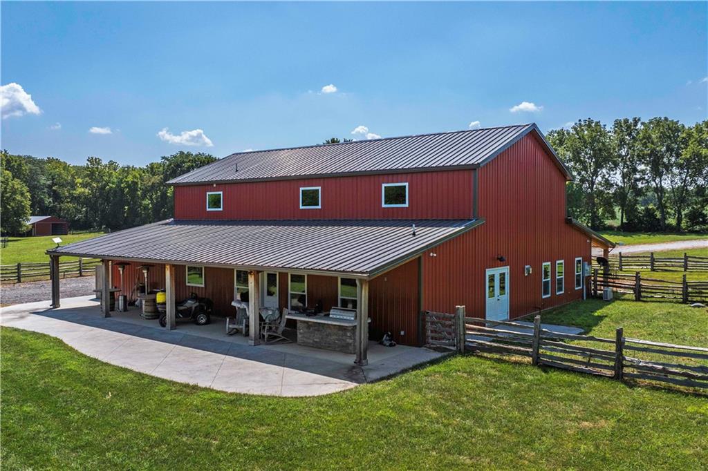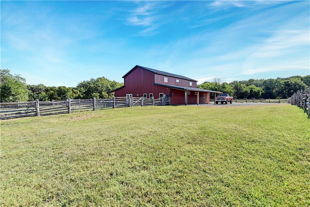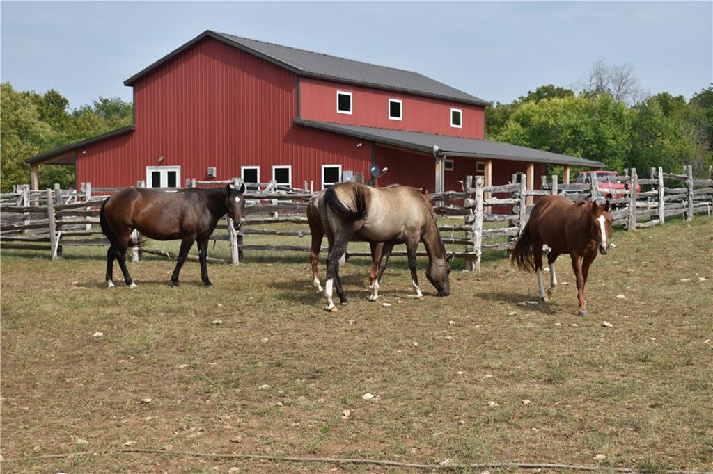 The perfect escape or incredible primary residence just minutes from amenities of Martin City and Overland Park! Built just 4 years ago, this "Bardominium" style home features soaring arched ceilings, 4 bedrooms, 3 full bath and an open concept kitchen/living room perfect for entertaining! 17 acres fenced for horses or recreational activities. In close proximity to Saddle and Sirloin or visit one of the two near by parks for a leisurely trail ride. The property has recently been used as a successful event space giving any buyer endless opportunity!