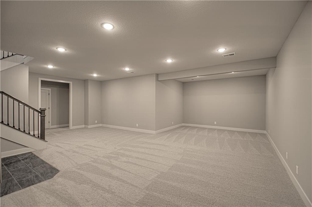 Introducing The Cambridge—the newest Reverse 1.5 Story floorplan by award-winning builder Inspired Homes, located in the highly desirable Pryor Ridge community. This beautifully designed 4-bedroom, 3-bath home offers the perfect blend of luxury, comfort, and everyday functionality. Step into a bright, open layout with a wide entry, dramatic staircase, 10' ceilings, and large windows that fill the home with natural light. The chef-inspired kitchen features quartz countertops, designer tile backsplash, soft-close cabinetry, a large island, and a walk-in pantry—perfect for entertaining. The great room boasts a stone fireplace and opens to a covered patio and flat backyard, ideal for outdoor living. Main level traffic areas boast Revwood throughout -- a high quality and durable laminate flooring. The main-level primary suite offers a spa-like bath with a 6’ soaker tub, walk-in shower, dual vanities, and a walk-in closet with direct laundry access. The finished lower level includes a rec room, wet bar, two bedrooms, full bath, and generous storage. Located just minutes from Downtown Lee’s Summit, lakes, trails, shopping, dining, and top-rated schools. BUY WITH PEACE OF MIND, the convenience of new construction backed by a 2-10 Home Warranty, offering 10 year structural, 2 year mechanical, 1 year workmanship Please excuse our dust—this home is in its final Quality Assurance stage!