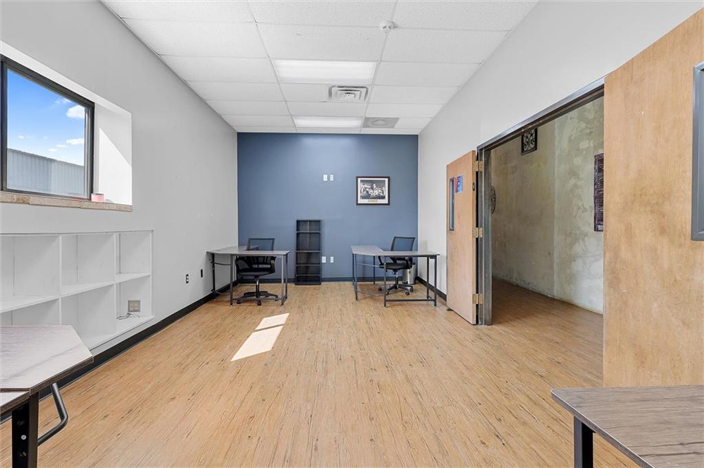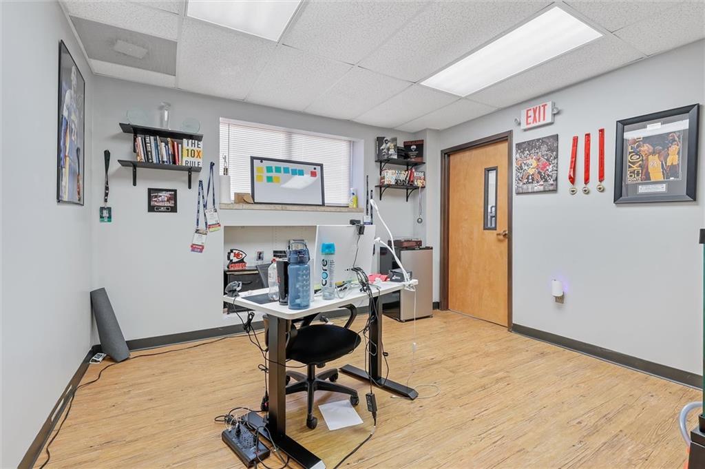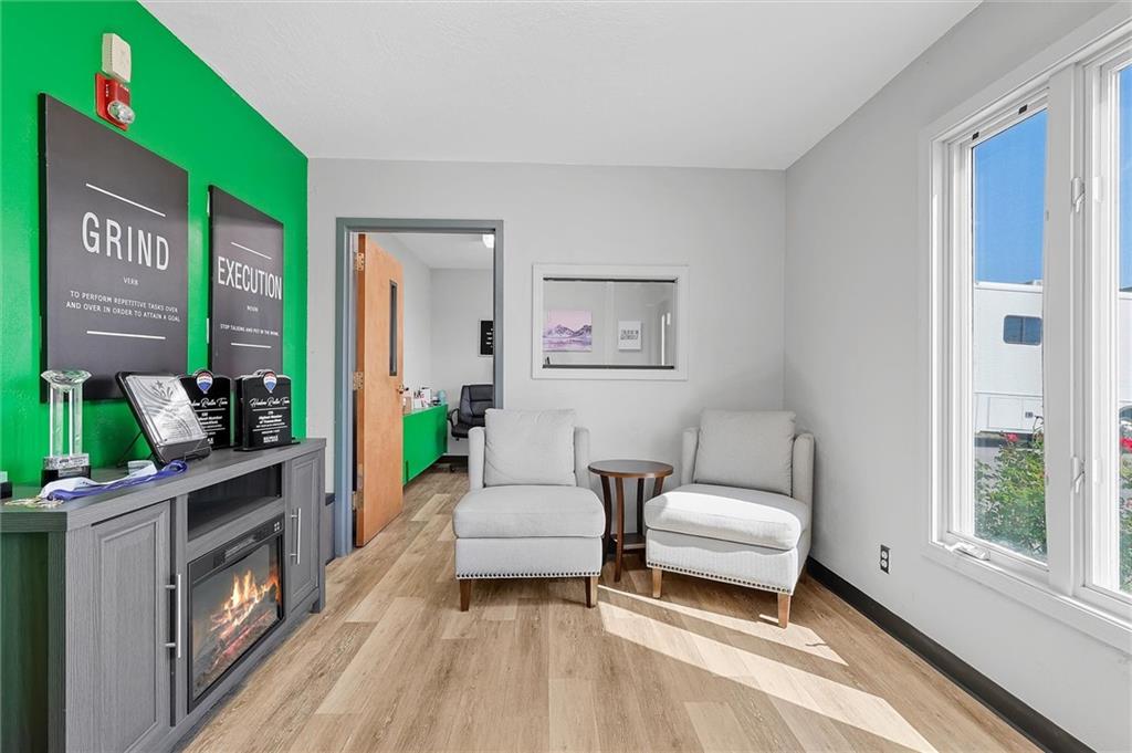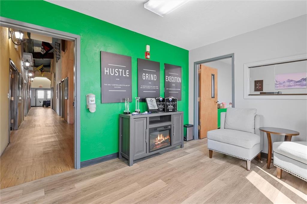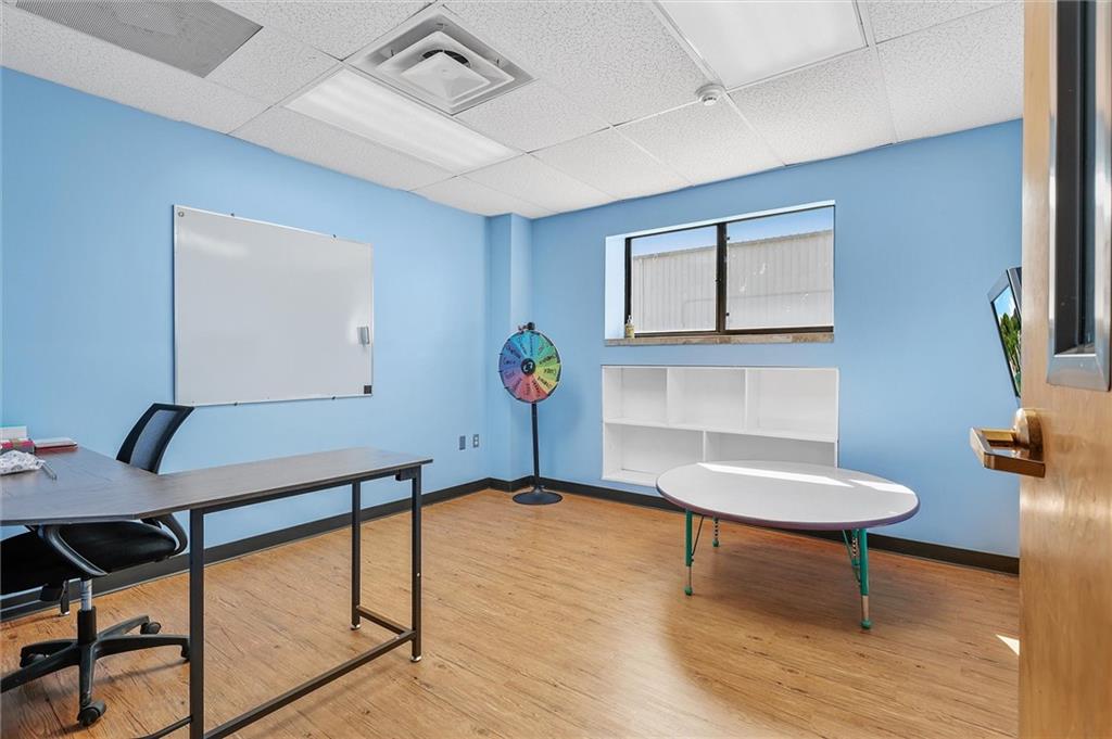 Prime commercial office building in a highly visible location just off 50 Highway and 291 Highway in Lee’s Summit. With the ongoing reconstruction of the area and access road visibility, this property offers tremendous exposure and growth potential. The building features a full commercial kitchen, eight large offices, four bathrooms, a large open space in the rear of the building and a spacious finished loft that can serve as additional office space or storage. It is ADA accessible and equipped with fire suppression, fire-rated sheetrock, and door jambs. Comfort is ensured with three zoned HVAC systems and three newer air conditioners. Additional conveniences include washer and dryer hookups, and plumbing for sinks and handwashing stations in multiple rooms from its prior daycare use—making it flexible and ready to accommodate a wide variety of businesses. The rear of the property includes a six-foot privacy fence with half the yard covered in artificial turf, ideal for low-maintenance use. A recently asphalted parking lot provides ample parking for staff and clients.