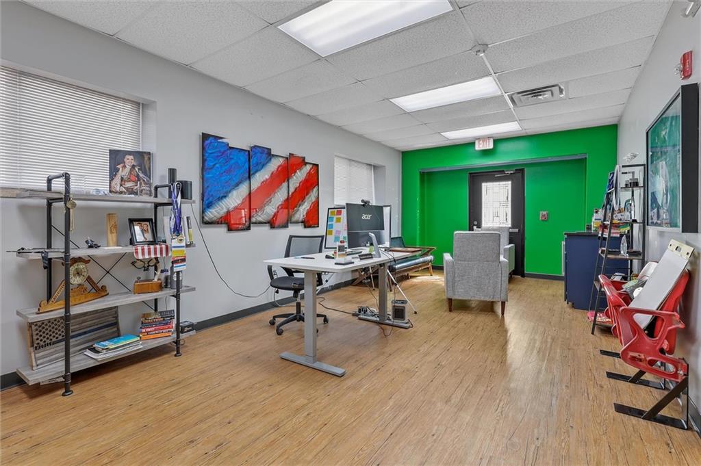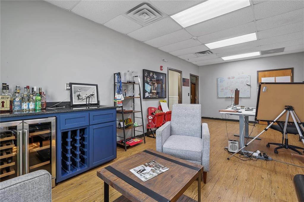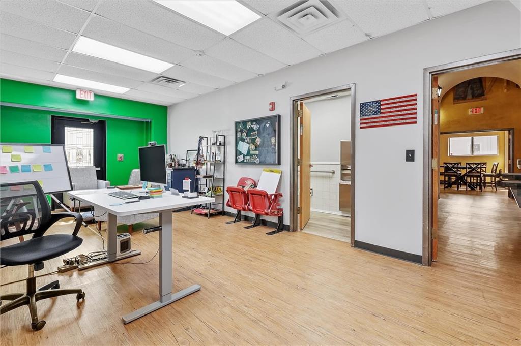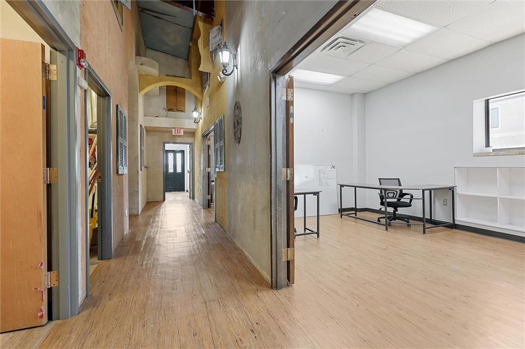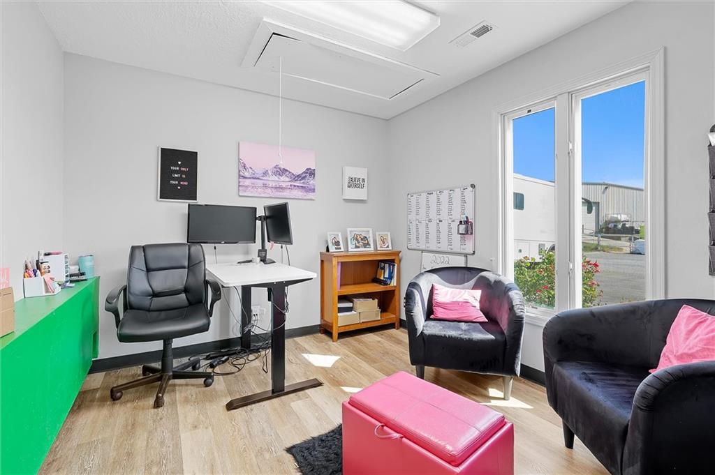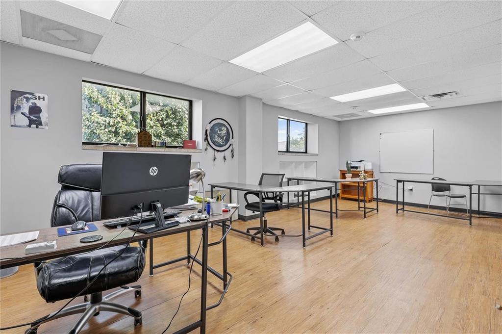 Prime commercial office building in a highly visible location just off 50 Highway and 291 Highway in Lee’s Summit. With the ongoing reconstruction of the area and access road visibility, this property offers tremendous exposure and growth potential. The building features a full commercial kitchen, eight large offices, four bathrooms, a large open space in the rear of the building and a spacious finished loft that can serve as additional office space or storage. It is ADA accessible and equipped with fire suppression, fire-rated sheetrock, and door jambs. Comfort is ensured with three zoned HVAC systems and three newer air conditioners. Additional conveniences include washer and dryer hookups, and plumbing for sinks and handwashing stations in multiple rooms from its prior daycare use—making it flexible and ready to accommodate a wide variety of businesses. The rear of the property includes a six-foot privacy fence with half the yard covered in artificial turf, ideal for low-maintenance use. A recently asphalted parking lot provides ample parking for staff and clients.