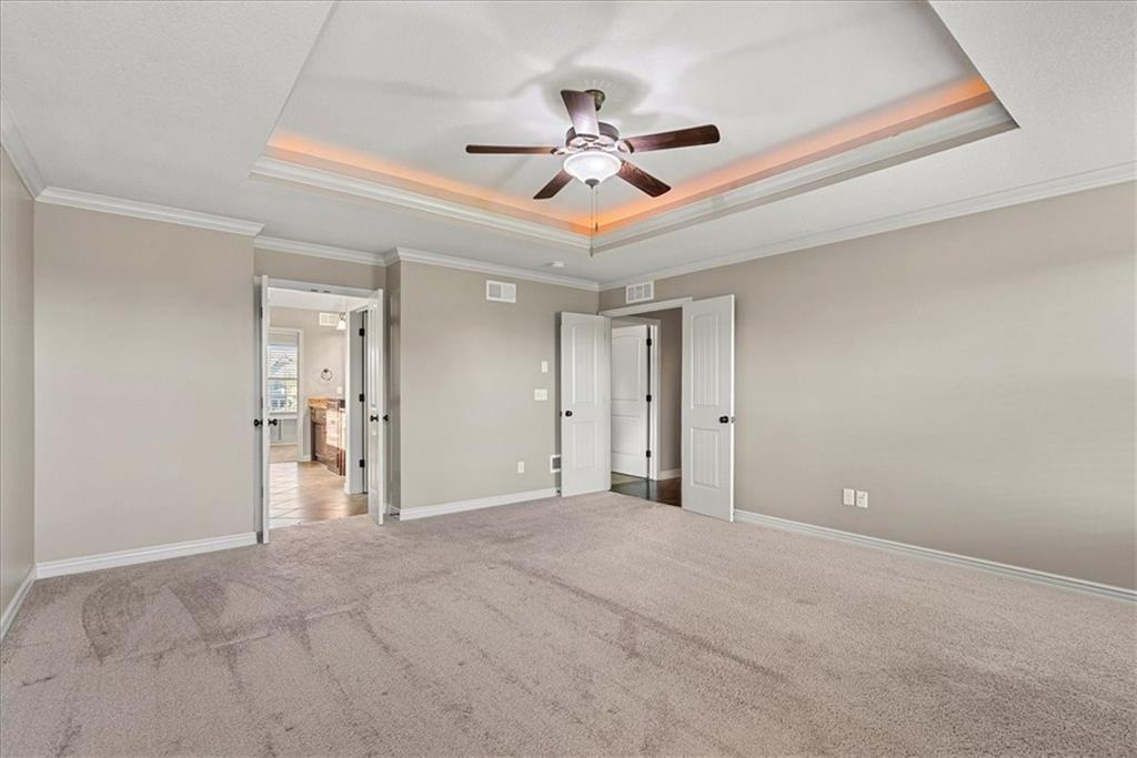 Fantastic Value and ask about the rate buy-down!!! Don't miss this opportunity to be in a coveted sub-division below value. Fast close available.....You will fall in love with this beautiful open floor plan with 5th bedroom/den and full bath on the main level for guests or main floor living. Gorgeous gourmet kitchen with Alder wood custom cabinetry, island, large walk-in pantry, and top-of-the-line appliances including a gas stove top and island microwave. Your new home FEATURES A HUGE PRIMARY SUITE WITH CUSTOM CABINETS, JETTED TUB, LARGE CLOSET AND SPACIOUS SHOWER. Each secondary bedroom has its own bathroom access. Need more space to expand; 6th bedroom/5th bath? Game room/man cave?? The WALKOUT basement is stubbed, insulated and ready for your touches for more finished SF. EV Charger already installed for your electric vehicles! Property is nestled in an amazing location right at the end of a private cul-de-sac. The manicured fenced-in lawn boasts at half an acre for many outside activities or just admire the beauty on the COVERED DECK or patio. You will fall in love with the community amenities such as the clubhouse, large pool, lake, trails, and basketball court which add so much appeal to this fantastic location. Being close to restaurants, shopping, highway access, top-rated schools, and the BluHawk district makes this home even more desirable. This one has it all!
