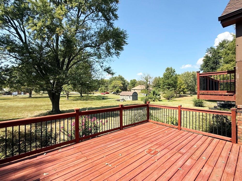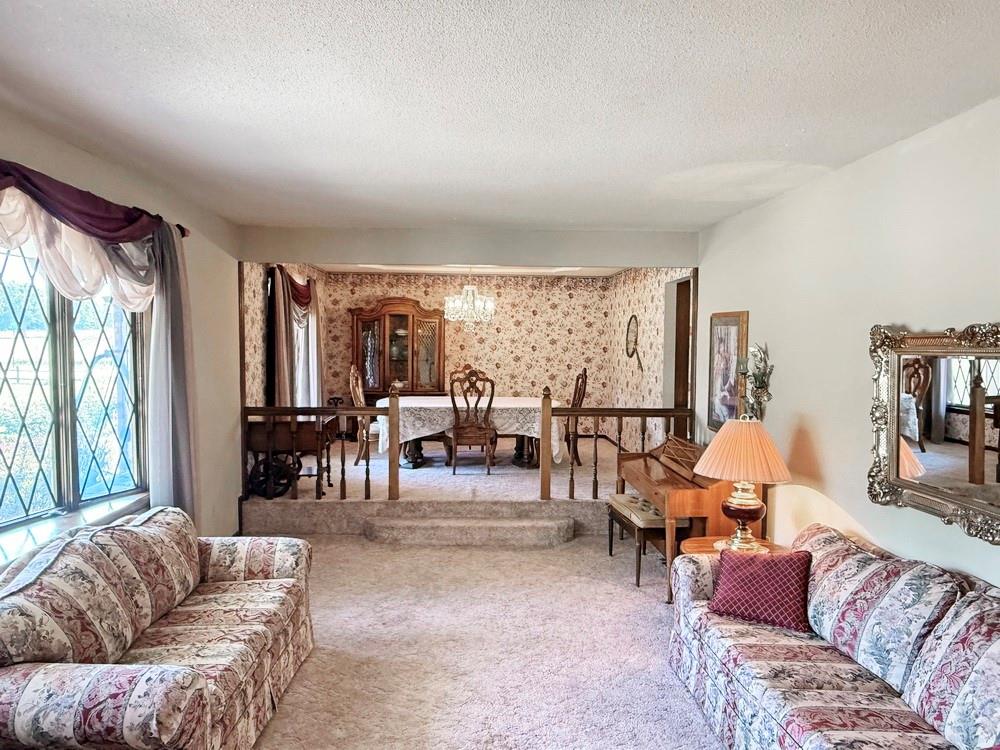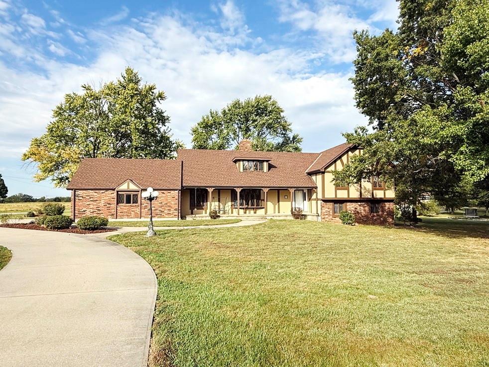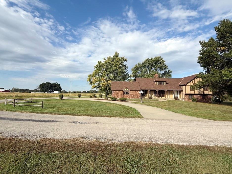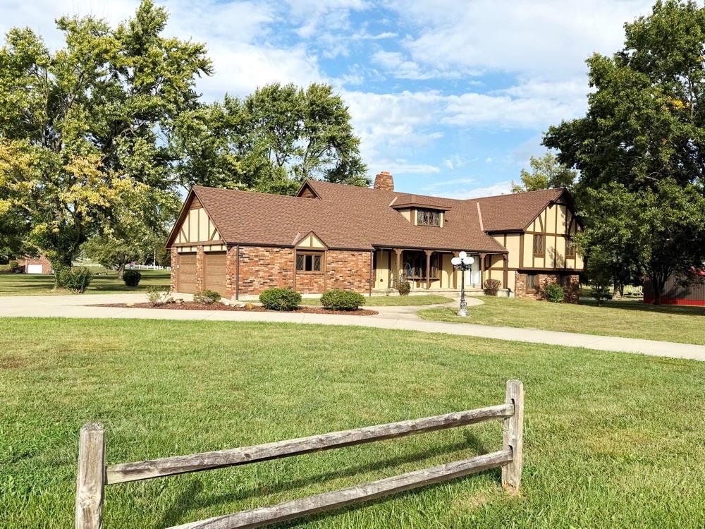 Spacious Tudor-Style Home on 1.6 Acres – Just Outside of Town Need Space---Look no further!!! This 6-bedroom, 3.5-bath Tudor home offers nearly 4,000 sq. ft. of finished living space plus 1,160 sq ft of unfinished basement. The separation of floors provides bigger rooms and better privacy for occupants. The home offers, not 1, not 2, not 3, but FOUR separate living rooms including the large rec room with small kitchenette on the lower level. The kitchen, with appliances included, features an eat-in breakfast space in addition to the formal dining area. These rooms provide the opportunity to spread out and host large gatherings of family or friends. The master suite showcases a high, cathedral ceiling with beams, 2 closets (one walk-in), a private balcony, and ensuite bath. Additional bedrooms are all generously sized, offering comfort and flexibility for guests, hobbies, or work-from-home office space. The full, unfinished, walk-out basement provides great storage & shelter. A 2-car attached garage & paved circle drive make egress and ingress easy and convenient. Set on 1.6 acres along a paved road, the property has a large yard with mature landscaping. It is located just outside of the city limits, allowing the homeowner to enjoy the peace of country-style living while being just minutes from the conveniences of town. While the home is move-in ready, it also offers an opportunity for updates to make it your own. With its size, layout, and location just outside of town, this 1-owner home is full of potential and ready for its next chapter. Call soon to schedule a showing on this unique property.