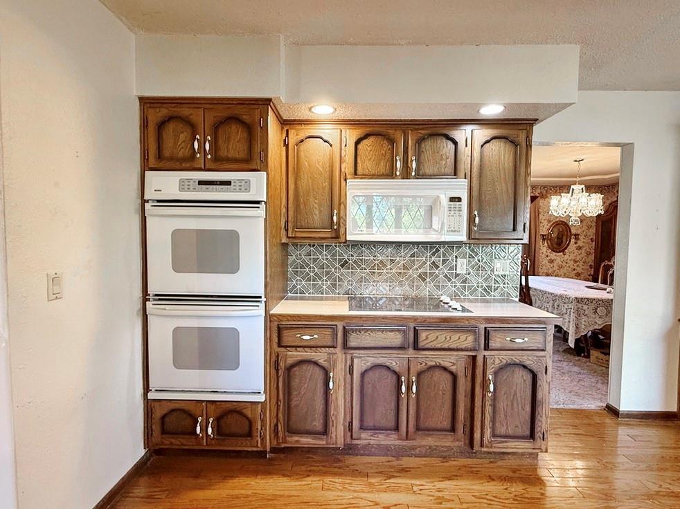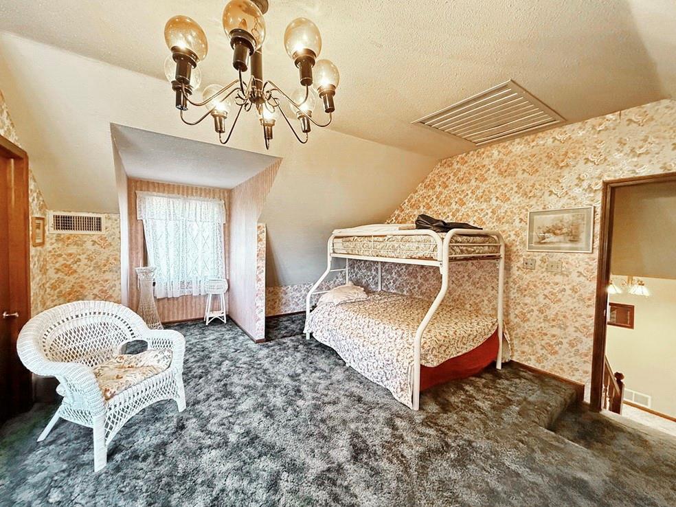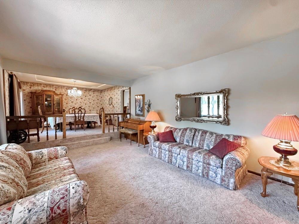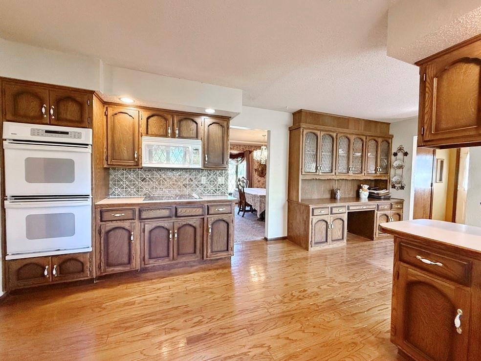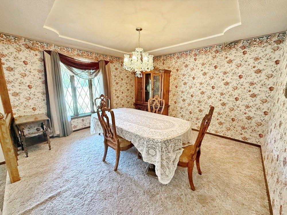 Spacious Tudor-Style Home on 1.6 Acres – Just Outside of Town Need Space---Look no further!!! This 6-bedroom, 3.5-bath Tudor home offers nearly 4,000 sq. ft. of finished living space plus 1,160 sq ft of unfinished basement. The separation of floors provides bigger rooms and better privacy for occupants. The home offers, not 1, not 2, not 3, but FOUR separate living rooms including the large rec room with small kitchenette on the lower level. The kitchen, with appliances included, features an eat-in breakfast space in addition to the formal dining area. These rooms provide the opportunity to spread out and host large gatherings of family or friends. The master suite showcases a high, cathedral ceiling with beams, 2 closets (one walk-in), a private balcony, and ensuite bath. Additional bedrooms are all generously sized, offering comfort and flexibility for guests, hobbies, or work-from-home office space. The full, unfinished, walk-out basement provides great storage & shelter. A 2-car attached garage & paved circle drive make egress and ingress easy and convenient. Set on 1.6 acres along a paved road, the property has a large yard with mature landscaping. It is located just outside of the city limits, allowing the homeowner to enjoy the peace of country-style living while being just minutes from the conveniences of town. While the home is move-in ready, it also offers an opportunity for updates to make it your own. With its size, layout, and location just outside of town, this 1-owner home is full of potential and ready for its next chapter. Call soon to schedule a showing on this unique property.