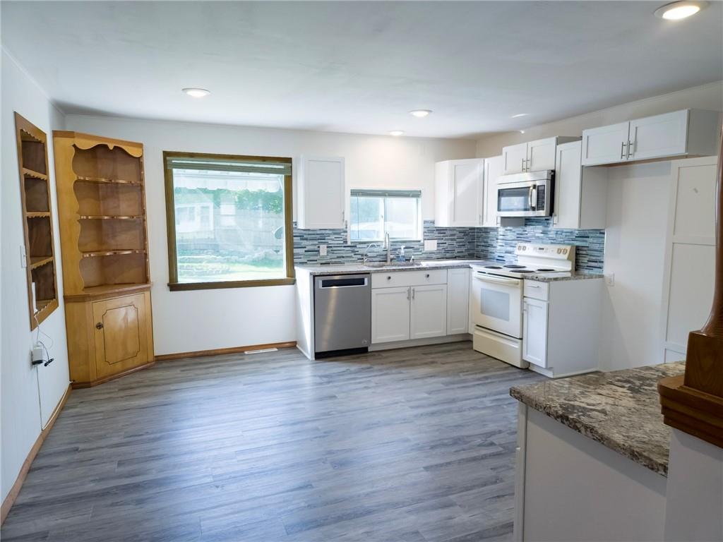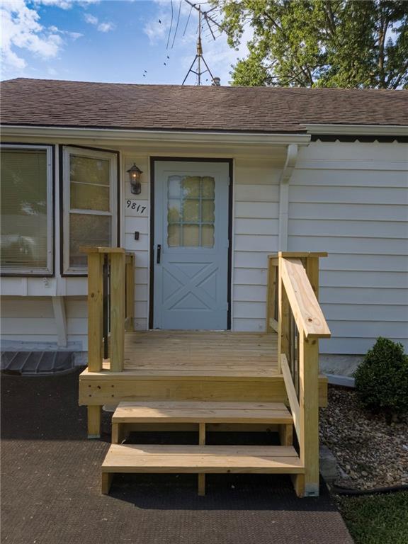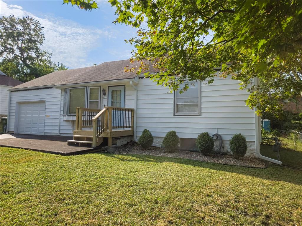 Welcome home to this updated ranch in Raytown. This property offers two bedrooms plus a finished lower level with a nonconforming third room and half bath, perfect for guests or a home office. The kitchen features new cabinetry, updated plumbing and electrical, and modern finishes that make the space feel bright and open. The full bathroom has been completely remodeled with tiled surfaces and designer touches. Luxury vinyl flooring, fresh interior paint, and new lighting throughout add to the clean, move in ready feel. Step outside to enjoy a brand new front deck, back patio, large fenced yard, and storage shed for all your extras. Conveniently located near Blue Ridge Blvd with quick highway access, this home offers space, updates, and value at an affordable price point.