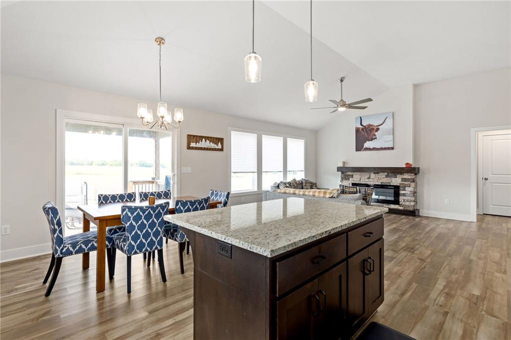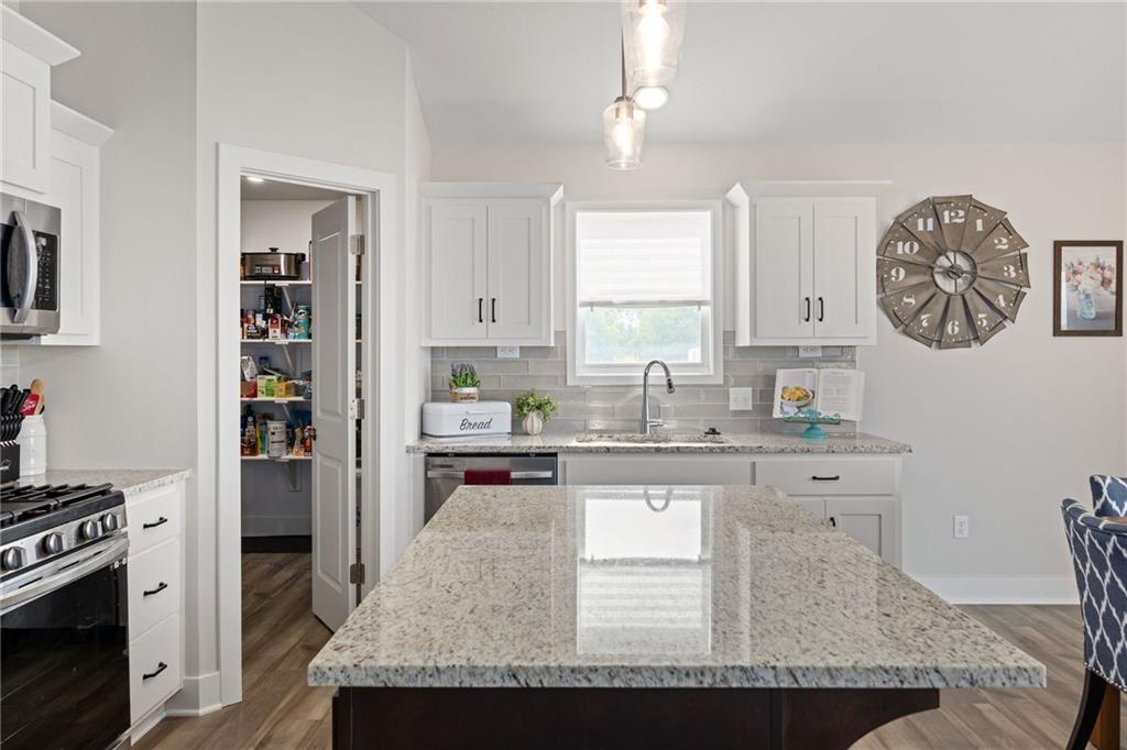 Located in the desirable Woodland Creek community, this beautifully maintained 4-bedroom, 3-bath home combines modern design with everyday functionality. The open-concept main level features a bright living area with a linear fireplace, large windows, and luxury vinyl plank flooring, flowing seamlessly into the kitchen with granite countertops, stainless steel appliances, and a spacious walk-in pantry. The primary suite offers a walk-in closet, double vanity, and private water closet, while two additional bedrooms on the main level provide flexibility for various needs. The finished lower level includes a large family room, fourth bedroom, full bath, and generous storage. Outdoor highlights include a fully fenced backyard, custom deck stairs, and mature lawn. Situated within the Smithville School District, residents enjoy a growing neighborhood with a community pool, convenient highway access, and a welcoming sense of connection. This home is move-in ready and thoughtfully upgraded for modern living.