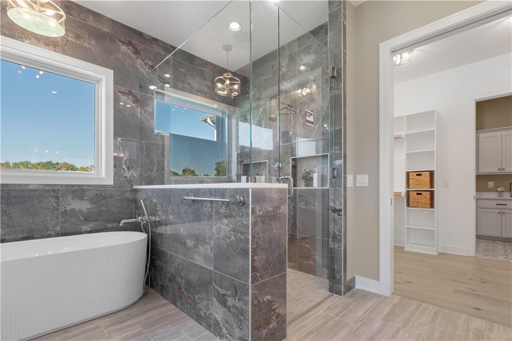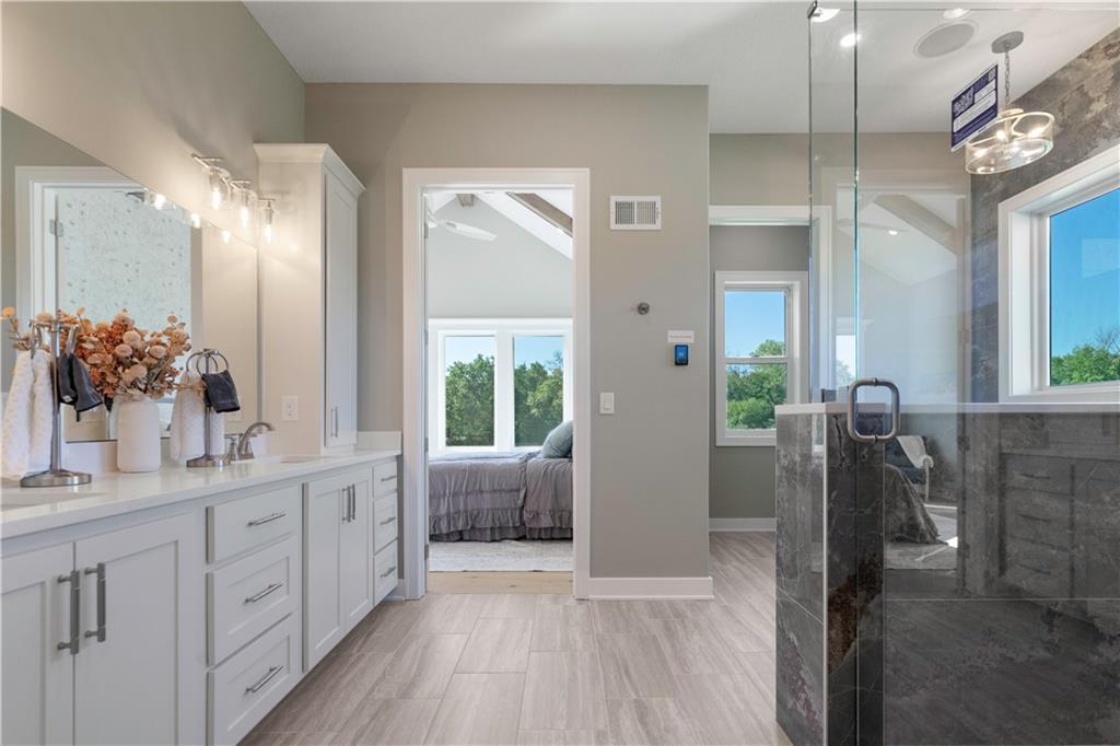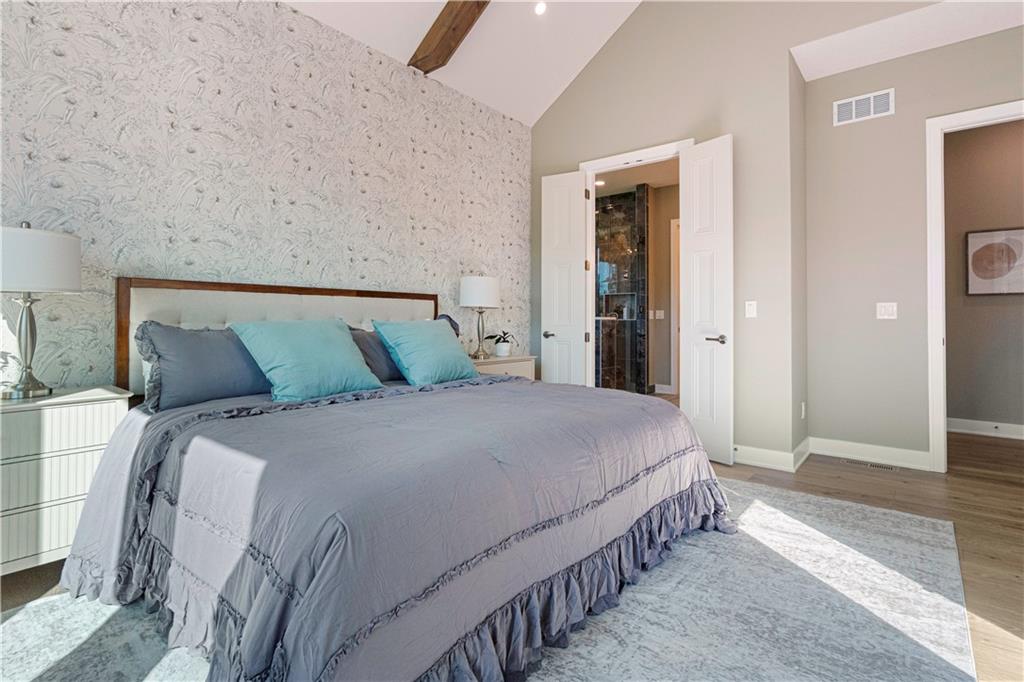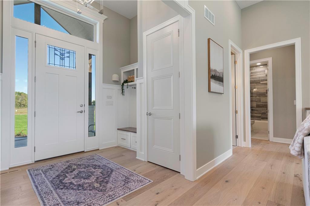 BRAND NEW Reverse 1.5 story by PCDI Homes! This stunning 5-bedroom, 4.5-bath home offers over 4,000 sq. ft. of expertly designed living space on a large 2.51-acre lot. With thoughtful details at every turn, this property combines high-end finishes, modern function, and outdoor living. The main level features soaring 12’ ceilings, white oak hardwood floors, and an open layout anchored by a custom fireplace with wood and tile accents. The gourmet kitchen is a showstopper, boasting a 10’ island, quartz counters, stainless steel appliances, double ovens, prep kitchen, custom tiled backsplash, and built-in hutch in the dining area. The luxurious main-floor primary suite is a true retreat, featuring a vaulted ceiling with wood beams, a cozy coffee bar, and private deck access for enjoying your morning cup with a view. The spa-inspired bath offers a double vanity with quartz counters, an oversized custom-tiled shower with bench, and a freestanding soaking tub. A spacious walk-in closet with tall ceilings and pull-down rods provides smart storage and convenience. Complemented by two additional bedrooms on the main level with a custom-tiled bath and a powder room bath off the entry. A convenient laundry is located on both levels. The finished lower level is an entertainer’s dream with a spacious rec room, wet bar, game area, plus two more bedrooms and two full baths. Car enthusiasts will love the oversized 4-car garage with workshop, sink, epoxy flooring, and a car lift. Outdoor living shines with a covered deck, patio, and firepit — perfect for gatherings. Located in the sought-after Basehor-Linwood school district, this property offers space, style, and sophistication inside and out. *BUILD YOUR DREAM OUTBUILDING / MANCAVE ON THE PROPERTY*