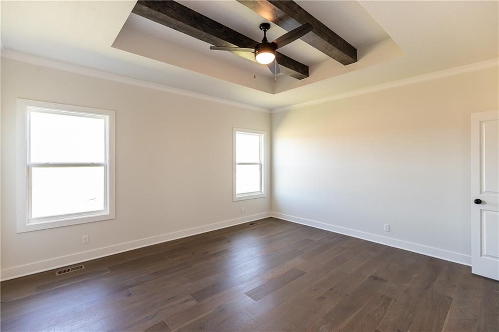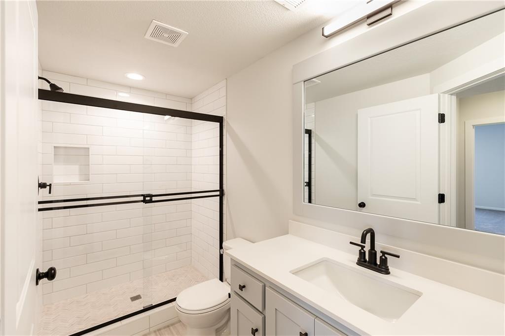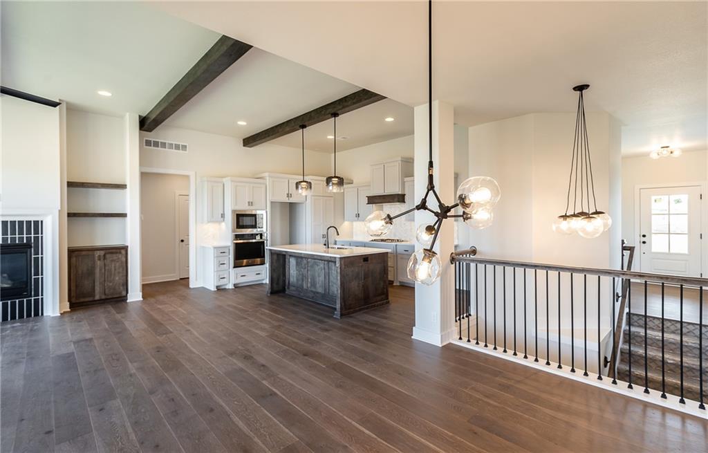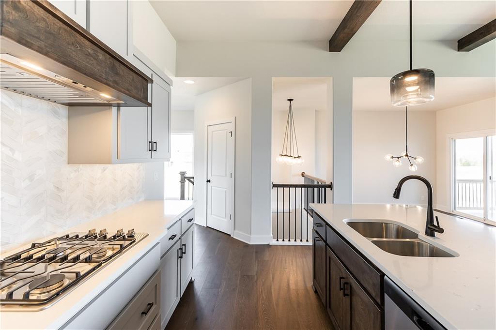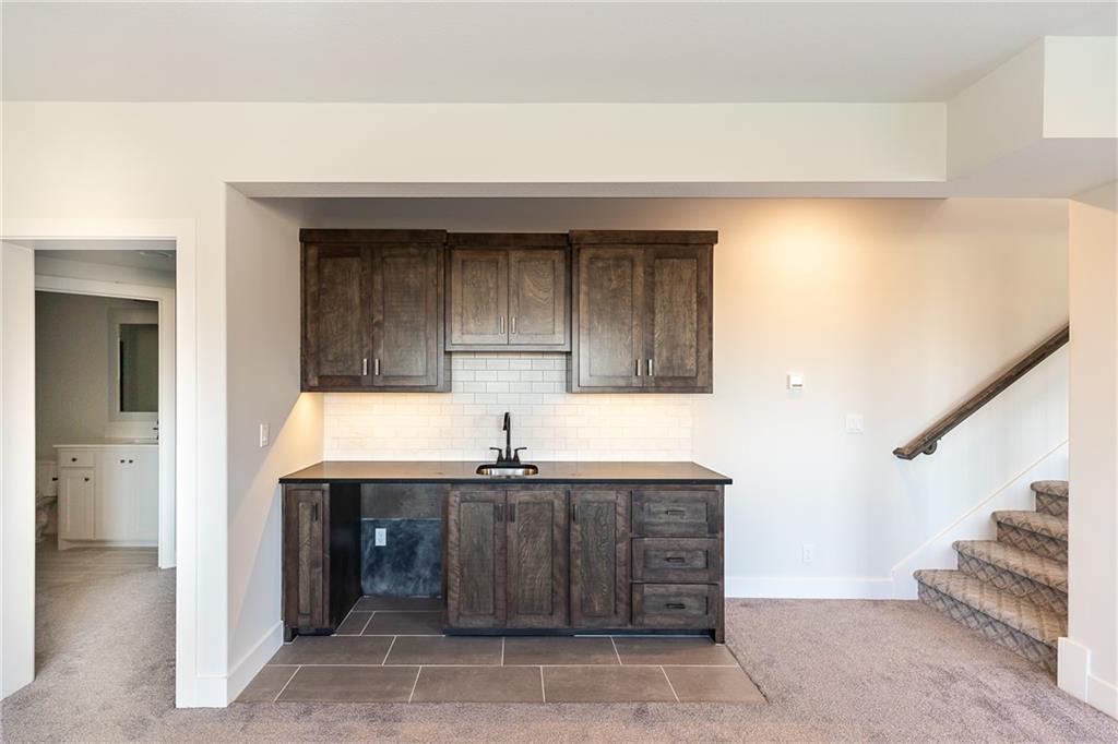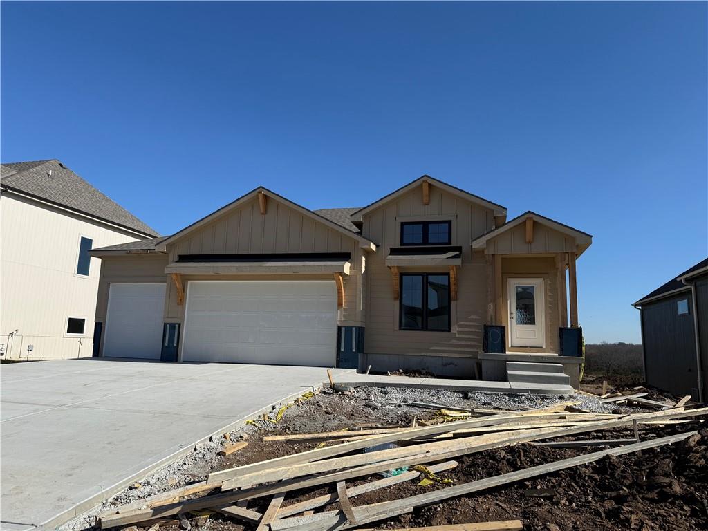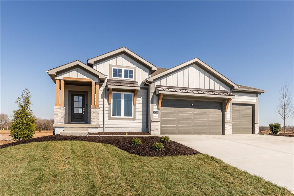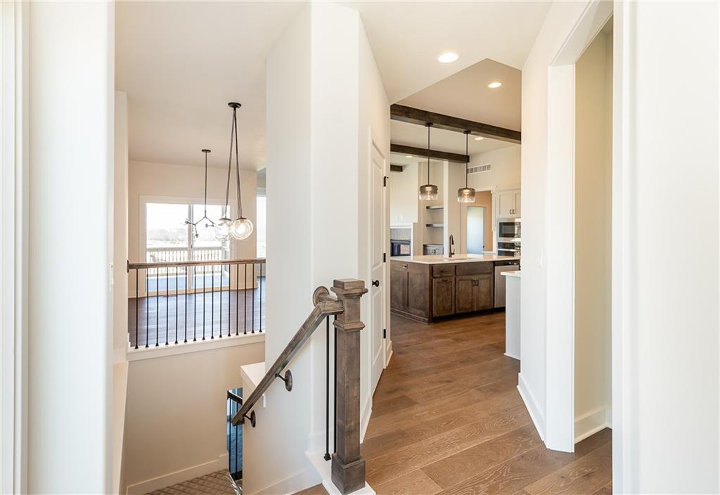 Award winning SAB Homes is a highly sought after builder in Southern Meadows community in the Blue Valley School District. This Hampshire reverse sits on lot 124 and has everything you need and more! From the incredible curb appeal featuring black windows and great roof line to the interior this home is packed with features. This home is perfect for many types of buyers, and fits the needs of most families and lifestyles. From the entry, this home has great flow and sight lines from the kitchen into the great room and dining room. The kitchen is well-appointed with a beautiful appliance package, walk-in pantry and a large island and opens to the great room. Large dining room perfect for entertaining with direct access to a fantastic covered deck. The Primary suite is impressive and the bath includes double vanities, fully tiled shower and a generously sized closet. The laundry is conveniently located between the mud hall and master closet. The lower level boasts two bedrooms, a family room/rec room with the perfect space for gaming, studying or someone who works from home. Enjoy a great level yard and walkout basement on perfectly flat and oversized yard. Home is currently at Trim stage and will be completed early 2026. Buyer is still able to make some selections. Photos of completed home are same floor plan however colors and features will vary!