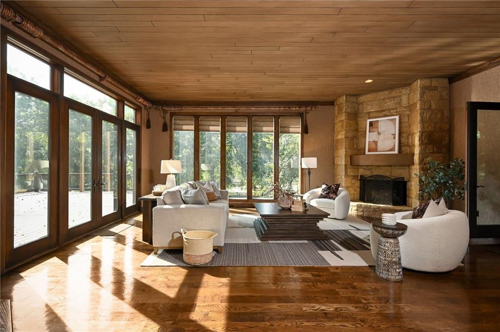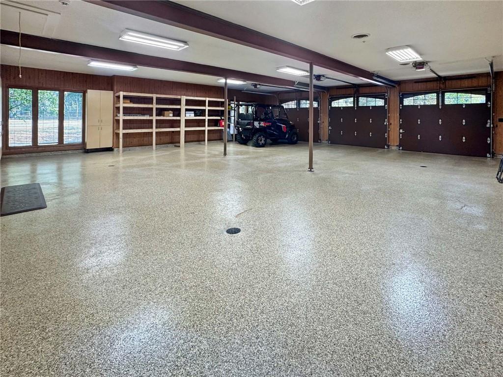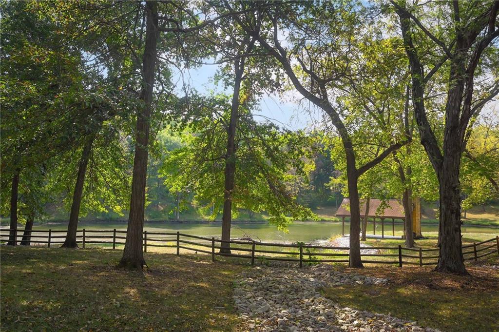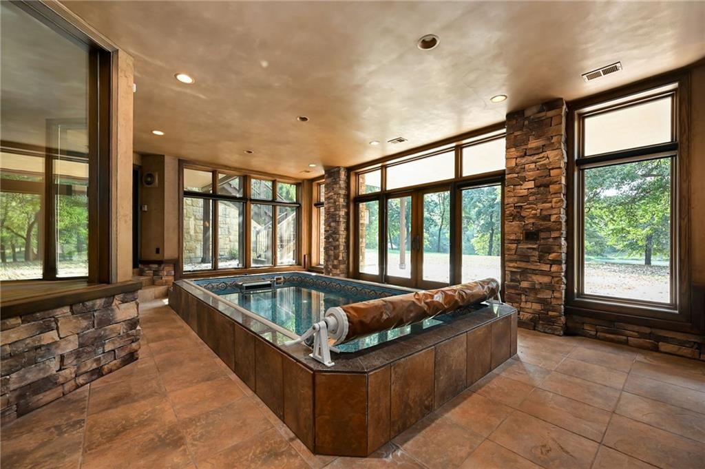 One-of-a-kind gated estate on 21 dreamy acres (4 parcels)! No HOA, tucked into a quiet neighborhood of mature trees and estate lots. This property is packed with luxurious amenities: heated saltwater outdoor pool (deep enough to dive), pool house cabana with WiFi, 117-yard golf hole, trails, volleyball, basketball, firepits and a 2+ acre stocked pond! The main home offers approx. 7,000 sq ft with 2 true primary suites upstairs, a 3rd bedroom in the finished lower level, and a 4th bedroom overlooking the flex room, and attached HVAC temperature controlled 6-car tandem garage with epoxy floors. Even more space is found in the charming two-bedroom carriage/guest house accessory the driveway with a 2 car garage. The Kitchen has brand new, high-end appliances, walk-in pantry with custom pull out storage, kitchen water filtration, two additional dishwasher drawers, and walks out to an oversized composite deck. The lower level has a bar for entertaining, fantastic theater room, a flex room with the indoor exercise pool that walks out to a covered porch. The home overflows with upgrades such as wide plank real wood floors with flush mount vents, whole house water softener, luxury trim work, Hunter Douglas blinds, steam showers, two laundry rooms, sliding screens at multiple screen doors, new exterior paint 2024, and more! This is more than a home -- it's a property designed for entertaining, relaxing, and enjoying the great outdoors! Enjoy a lifestyle and privacy views that can't be duplicated, all in a lovely neighborhood! There was once an additional bedroom in the main home that can be converted back for a 5th bedroom.