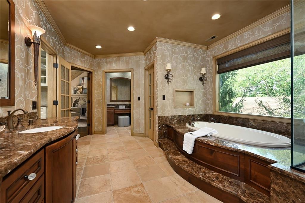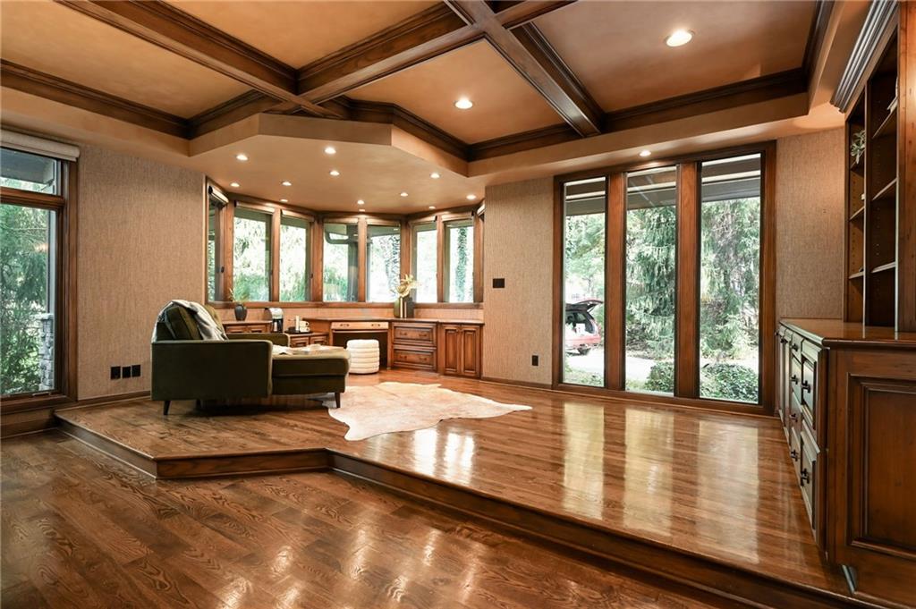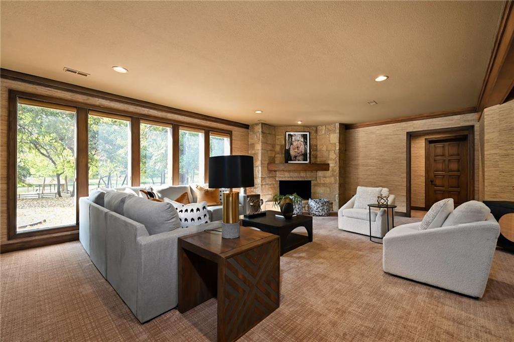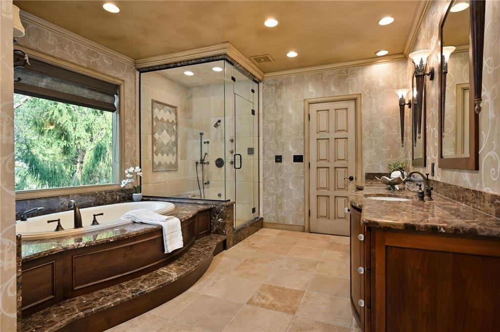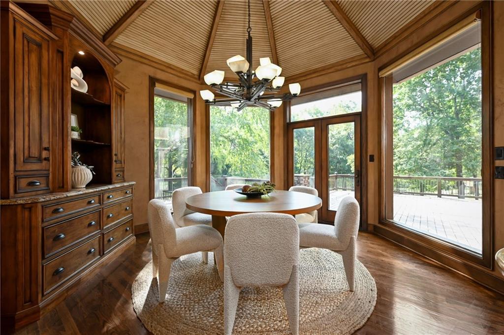 One-of-a-kind gated estate on 21 dreamy acres (4 parcels)! No HOA, tucked into a quiet neighborhood of mature trees and estate lots. This property is packed with luxurious amenities: heated saltwater outdoor pool (deep enough to dive), pool house cabana with WiFi, 117-yard golf hole, trails, volleyball, basketball, firepits and a 2+ acre stocked pond! The main home offers approx. 7,000 sq ft with 2 true primary suites upstairs, a 3rd bedroom in the finished lower level, and a 4th bedroom overlooking the flex room, and attached HVAC temperature controlled 6-car tandem garage with epoxy floors. Even more space is found in the charming two-bedroom carriage/guest house accessory the driveway with a 2 car garage. The Kitchen has brand new, high-end appliances, walk-in pantry with custom pull out storage, kitchen water filtration, two additional dishwasher drawers, and walks out to an oversized composite deck. The lower level has a bar for entertaining, fantastic theater room, a flex room with the indoor exercise pool that walks out to a covered porch. The home overflows with upgrades such as wide plank real wood floors with flush mount vents, whole house water softener, luxury trim work, Hunter Douglas blinds, steam showers, two laundry rooms, sliding screens at multiple screen doors, new exterior paint 2024, and more! This is more than a home -- it's a property designed for entertaining, relaxing, and enjoying the great outdoors! Enjoy a lifestyle and privacy views that can't be duplicated, all in a lovely neighborhood! There was once an additional bedroom in the main home that can be converted back for a 5th bedroom.