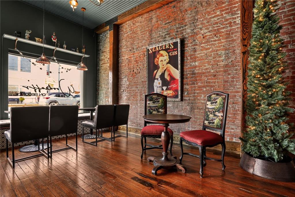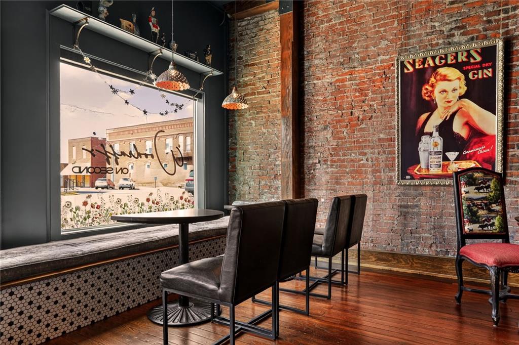 Beautifully restored building located in the heart of historic downtown Odessa, MO. The owners renovated with great attention to detail and strived to maintain the historic charm and original character. The charming establishment has operated as a craft cocktail lounge blending modern mixology with vintage ambiance, offering a unique experience for patrons. The 2nd level above the cocktail lounge offers a newly finished area with an open layout and includes space for a bathroom and plumbing for a kitchenette if desired. The building includes a second a storefront (204) adjoining the cocktail lounge. Wonderful location and space that offers lots of options to grow the business with food, service, private events or retail. Bring your creative ideas!