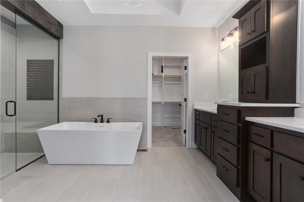Welcome to an UPGRADED Catalina with SUNROOM by Crestwood Custom Homes at maintenance-provided Crestwood Village (the best location for new construction in town). You do not want to miss these views! Upon entry you will notice 11' ceilings in the entry and great room, walls of windows, and the PERFECT spot in the sunroom to sit, relax, enjoy coffee or read a book. The highlights of the kitchen include a kitchen island, gas stove, quartz counters, gooseneck faucet, and a walk-in pantry. Elevated dining area features a wall bump out, custom cabinetry and quartz counters, amplifying the look of the entire space. You will find beautiful hardwood floors throughout the main living area enhanced by extensive trim detail and a cozy, gas fireplace. The owner suite and bath are showstoppers. Large, zero-entry, walk-in shower and free standing tub makes this room feel like a spa retreat. Huge walk-in closet with tiered, off-season storage is adjacent to the laundry room, perfect design for ease and convenience. The finished lower level is ideal for entertaining with large family room, walk-up bar with mini fridge, sink and quartz counter top, 2 additional bedrooms, and an additional full bath (bonus space under the sunroom). Drink your morning coffee in the sunroom or on the covered deck while looking at the beautiful views. Additional outdoor entertaining area on the lower, covered deck outside the walkout, finished basement. Crestwood Village is a cascading, beautiful neighborhood with vibrant landscaping - come out and see for yourself! Close to paved walking/biking trails, restaurants, shops, grocery stores, medical facilities and highways. Your time is now your own - maintenance provided community $250/month - no more lawn work, snow removal, etc. **Home is at paint stage. PHOTOS OF A SIMILAR MODEL** Crestwood Village allows fences.