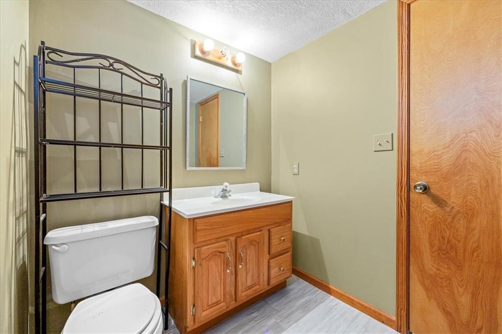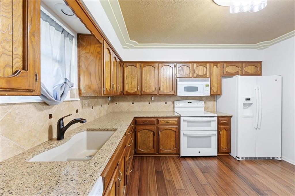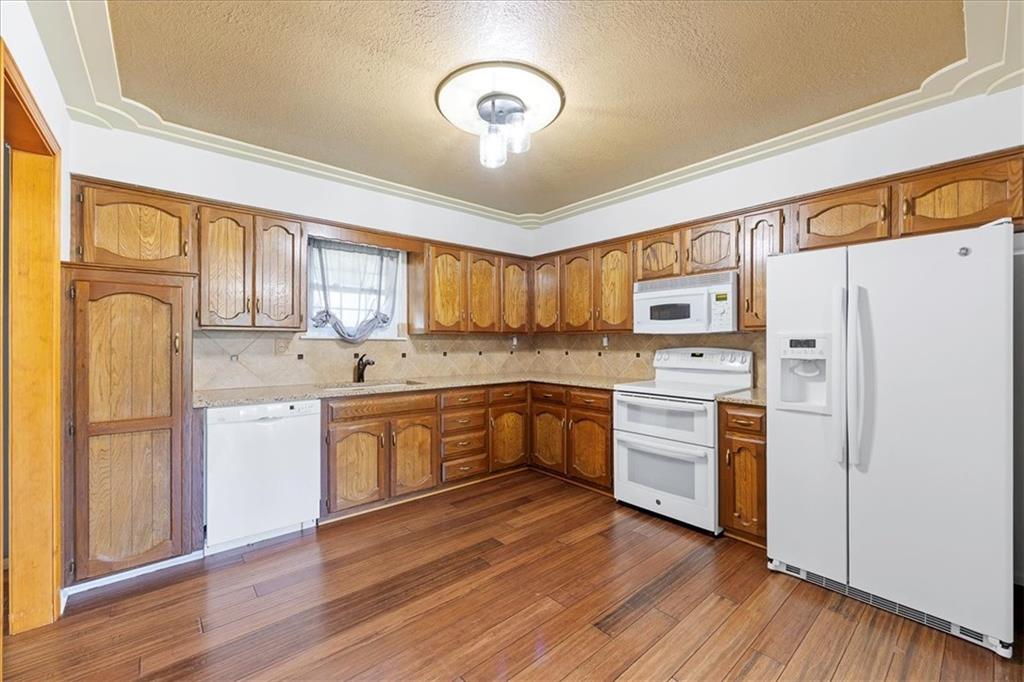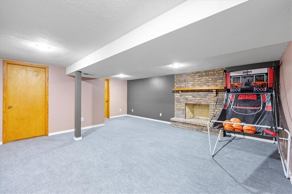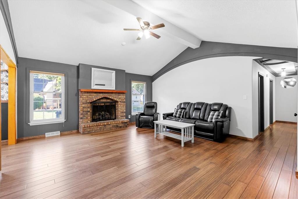 NEW PRICE IMPROVEMENT! Welcome to this updated well maintained raised ranch in a great location close to everything you need! Beautiful hardwood floors great you as you enter into the home & the light filled living room with vaulted ceilings, a ceiling fan & brick wood burning fireplace. Hardwood floors continue throughout the home into the functional kitchen with granite counters, lovely stained cabinets & all the appliances stay. Kitchen opens up to the dining space with updated lighting, paint, wall paper & lots of natural light from the atrium door that leads to a deck, patio & large fenced backyard. Down the hallway is the updated hall bathroom with shower & tub, beautiful tile, new toilet, vanity with soft close drawers & convenient space for your washer & dryer. Three bedrooms including a large primary bedroom with walk in closet & updated primary bathroom including vanity with soft close drawers, new toilet & large tiled walk in shower. Carpeted stairs lead you down to the family room with fireplace, half bath, a non conventional 4th bedroom that includes a walk in closet. There's an additional flex room for an office, storage, craft room & a concrete safe room or additional storage. New tankless hot water heater provides endless hot water for the entire family. Large 2 car garage with openers & a driveway with extra parking space. Seller offering $1,000 towards new flooring for lower level if desired! Let's make this your new home in this desirable neighborhood close to parks, schools, shopping, restaurants & highways!