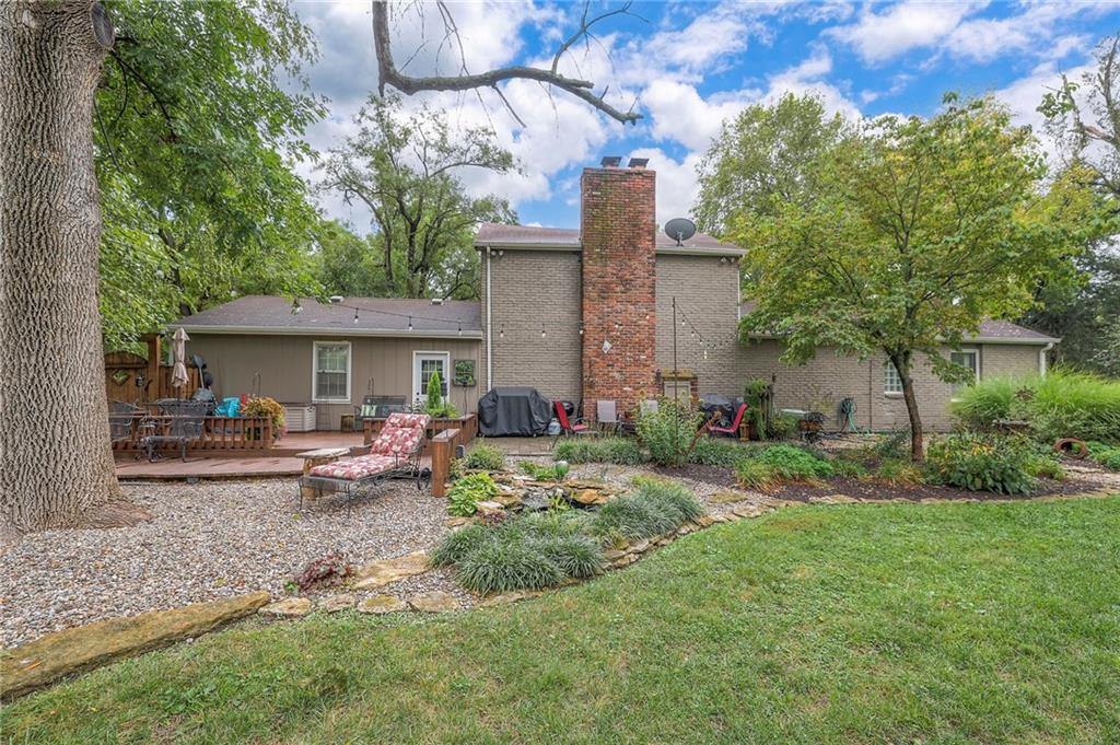 Nestled on five pristine acres in one of Stilwell's most sought-after neighborhoods, this exceptional 1980-story and a half-estate exemplifies pride of ownership and meticulous care at every turn. With 1,652 square feet of main-level living plus an additional 606 square feet of beautifully finished basement space, this property offers 2,258 total square feet of thoughtfully designed living space that seamlessly blends with tranquility. 3 bedrooms and 1 bathroom. Plenty of room upstairs to add an additional bathroom. Every aspect of this property reflects exceptional pride of ownership and meticulous care. The well-above-average landscaping showcases professional design and ongoing maintenance, creating stunning curb appeal and outdoor living spaces that enhance the property's natural beauty. From the manicured lawns to the thoughtfully placed plantings and mature trees, the grounds reflect the same attention to detail found throughout the home. A professionally constructed Koi Pond is just off the gorgeous deck. This property is pristine and ready for a new owner. The sought-after neighborhood setting ensures strong property values and a community of like-minded residents who appreciate quality, privacy, and the country lifestyle. Yet you're never far from urban amenities, making this location ideal for families, professionals, or anyone seeking the best of both worlds. If this is not your dream home, no problem, it's still your dream location, and you can always replace this house with your forever home. 2nd listing agent is related to sellers.