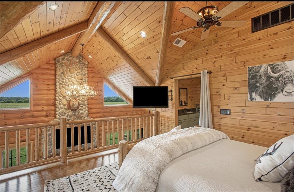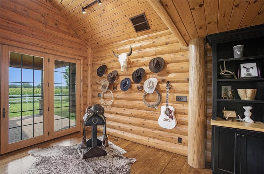 Discover the charm of rustic living at 19295 Highway 52 in Pleasanton, KS. This beautiful log cabin-style home is set on a picturesque 15-acre parcel, offering a perfect blend of natural beauty and modern comfort. The residence features 4 bedrooms and 3 bathrooms, spread over 3,149 square feet of living space, each corner thoughtfully designed with natural wood details and expansive windows that fill the home with light. Inside, enjoy the open-concept layout that seamlessly connects the living, dining, and kitchen areas—ideal for both everyday living and hosting gatherings. The kitchen, equipped with modern amenities, provides a functional space for culinary enthusiasts. The expansive acreage surrounding the home presents endless opportunities for outdoor enjoyment. The land has a beautiful tree line to the west, offering privacy and a sense of seclusion, yet ample open space invites recreational activities. Additional structures include a 40x56 pole barn, a 42x56 barn, and a 8x12 shed, providing versatile options for storage or hobby uses. This log cabin retreat in Pleasanton is more than just a home; it’s a lifestyle choice, inviting you to experience the tranquility and beauty of rural living with the convenience of modern amenities. Explore the potential of this unique property today.
